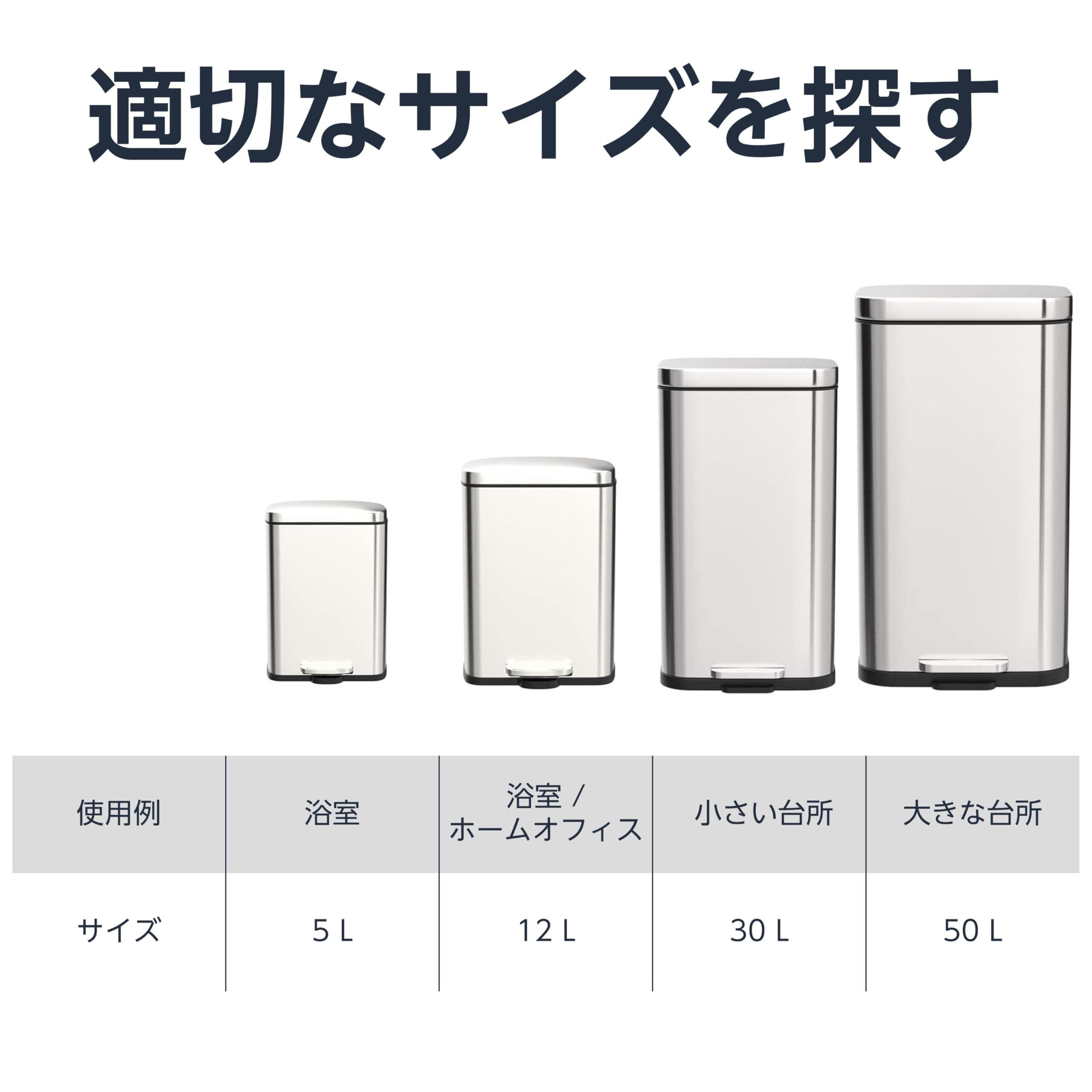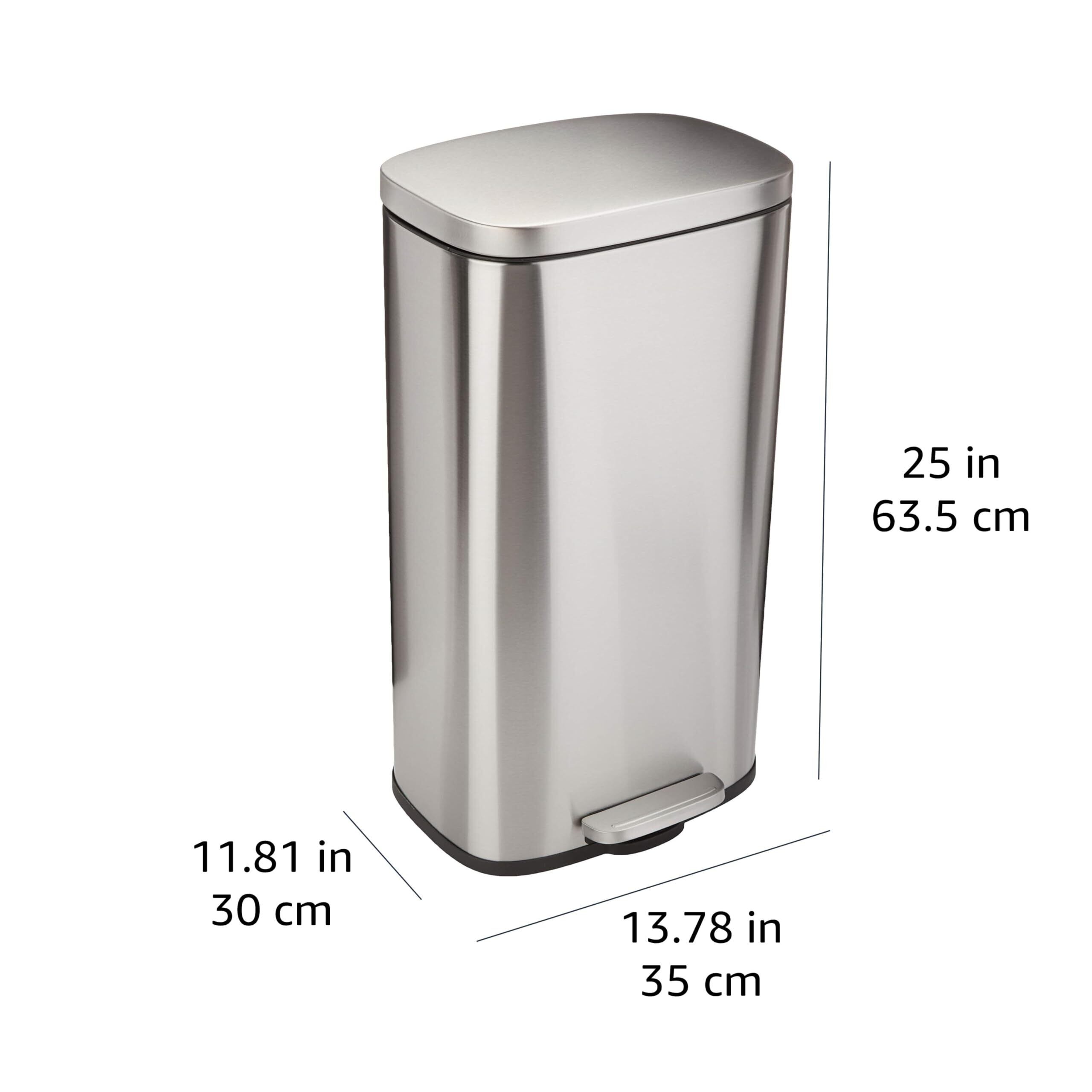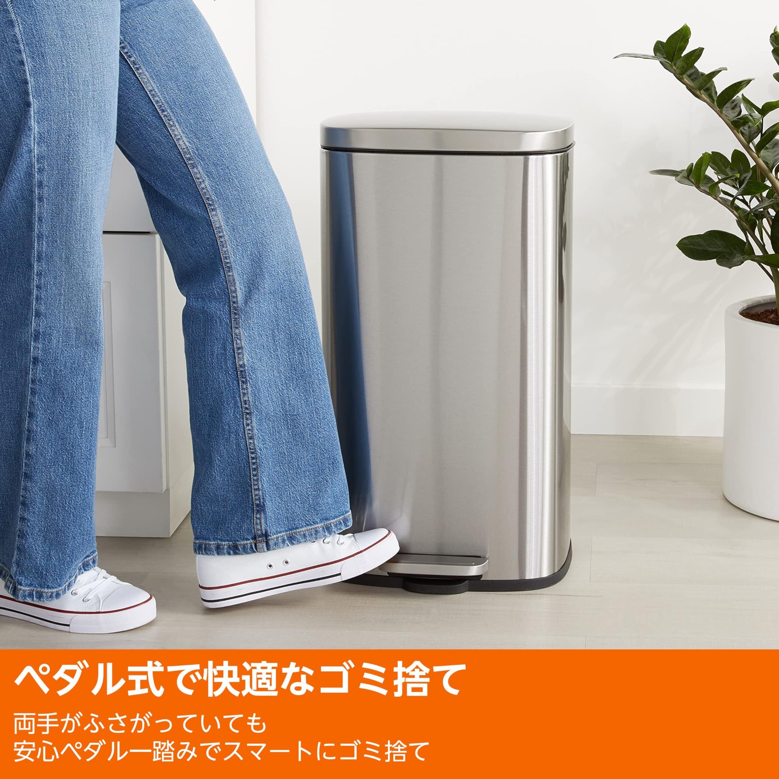 Amazonベーシック ゴミ箱 30L(30リットル) ソフトクローズ 静音 ふた付き ペダル付き スチール製 サテンニッケル おしゃれ 長方形