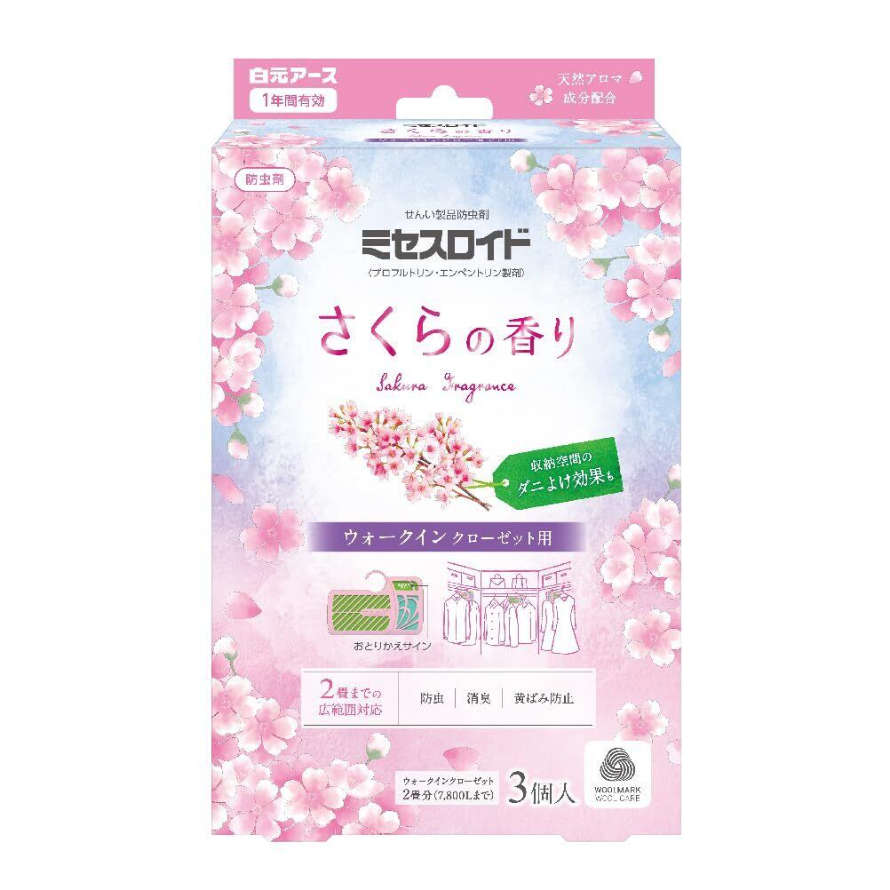 ミセスロイドウォークインクローゼット用3個入 1年防虫 さくらの香り 防虫剤