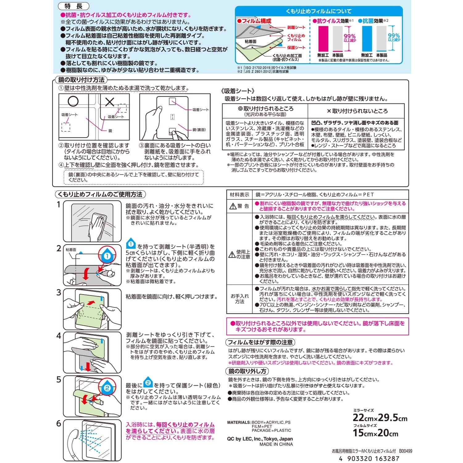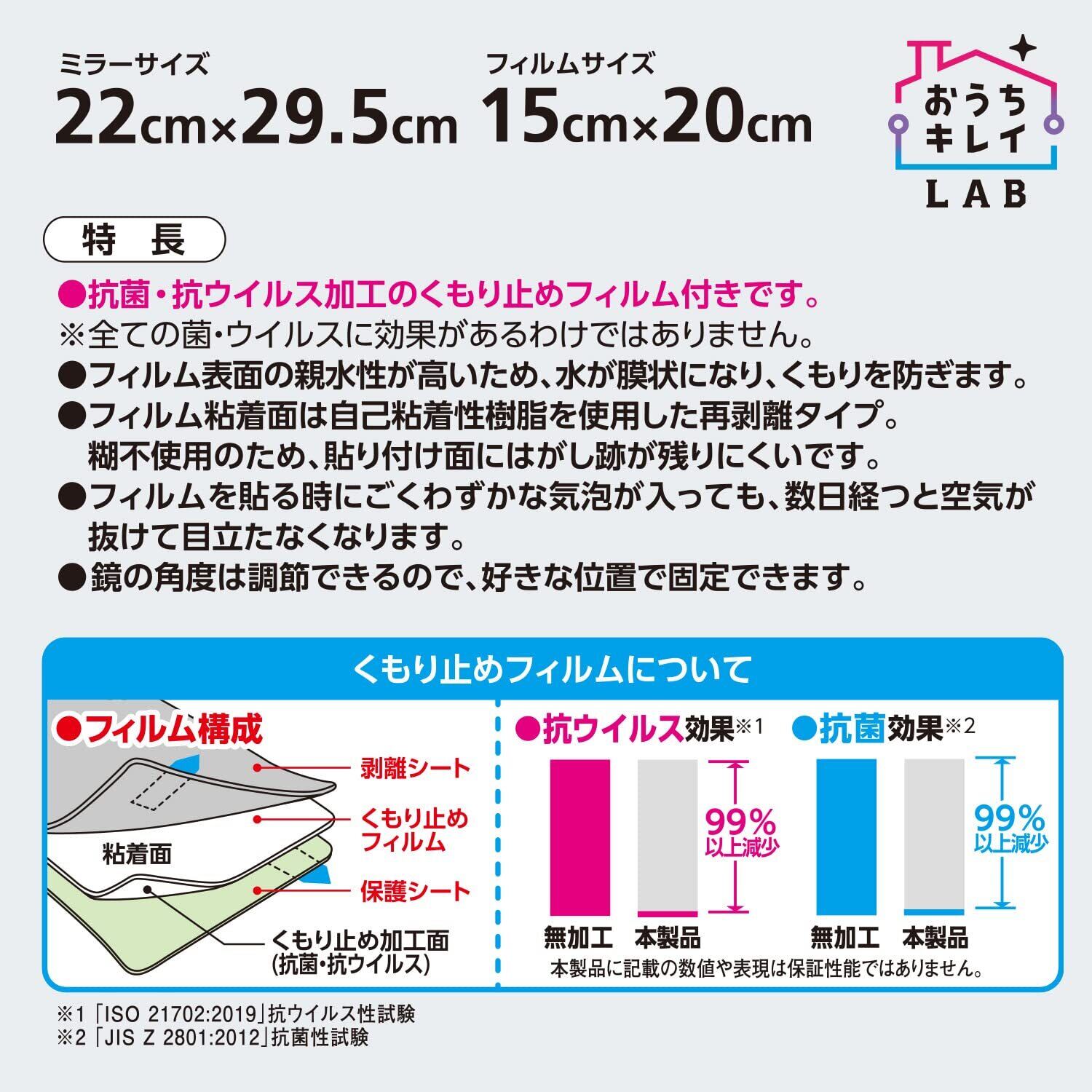 【素材】●鏡:アクリル・スチロール樹脂 ●くもり止めフィルム:PET