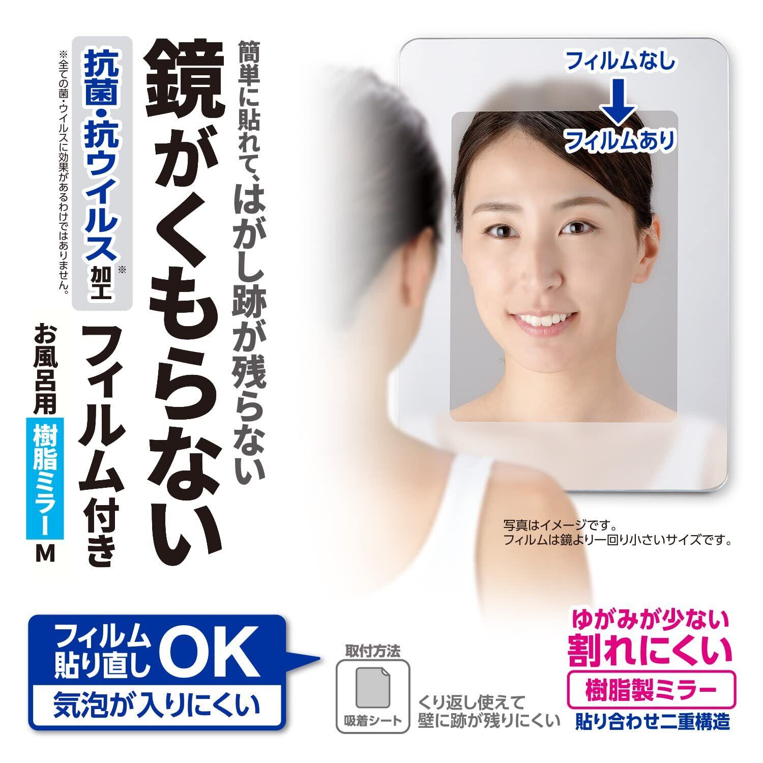 鏡がくもらない抗菌・抗ウイルス加工くもり止めフィルム!