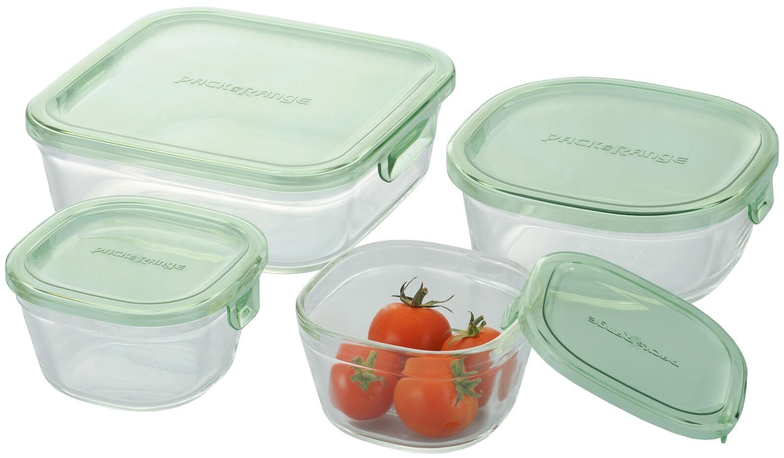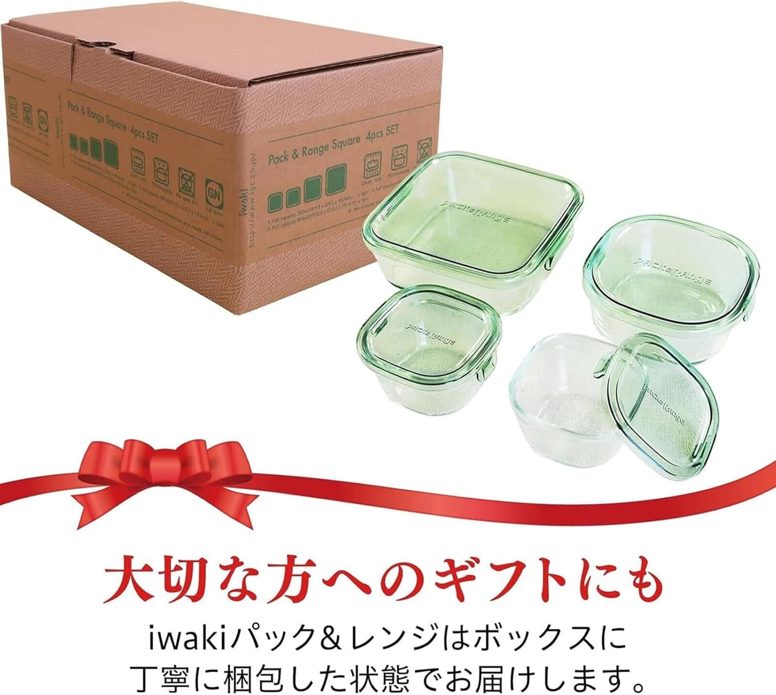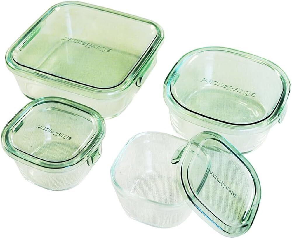 iwaki(イワキ) 耐熱ガラス 保存容器 グリーン 4個セット パック&レンジ PS-PRN-4G1