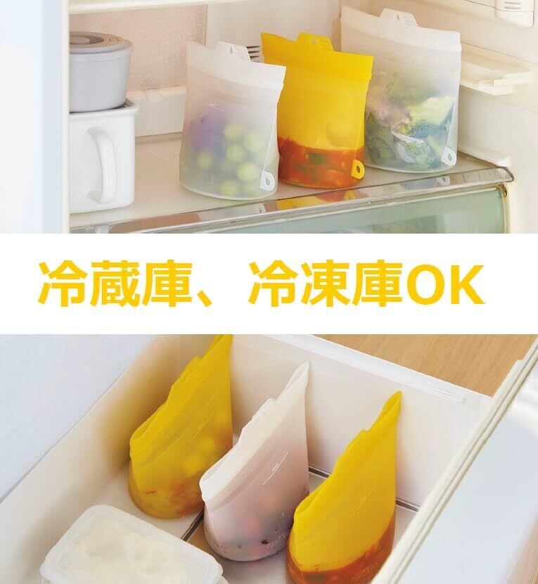 1つでラクラク作り置きにも! 調理+加熱+保存 冷蔵庫・冷凍庫に 調理時のボウル代わりに!電子レンジ・湯せんに! 下味をつける時にも便利! 洗ってくり返し使えるシリコンバッグ。 レンジや湯せんでの加熱ができる! 常温保存はもちろん、冷蔵庫や冷凍庫での保存もOKな便利アイテム! 底が広いから肉や野菜の積み重ね調理もラクラク! 上部はチャック式! 食洗機OK 調理O K、電子レンジO K、湯せんO K、冷蔵庫・冷凍庫O K 大きく開いてしっかり自立! 小分けに便利な1Lサイズ ●容量目安(約)/1L ●耐熱温度(約)/200℃ ●耐冷温度(約)/-30℃