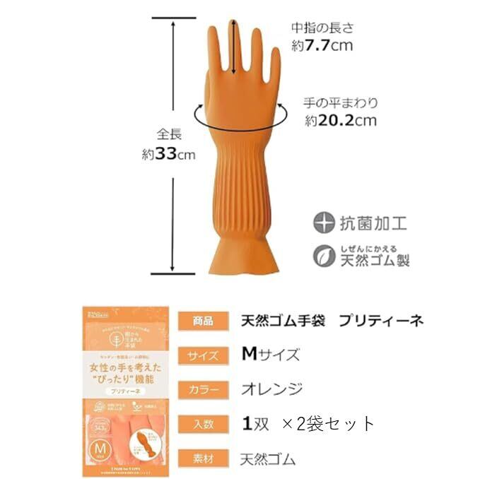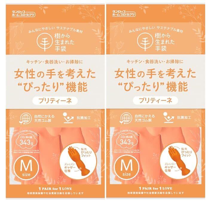 【2個セット】ダンロップホームプロダクツ(Dunlop Home Products) 樹から生まれた手袋 プリティーネ Mサイズ オレンジ/ゴム手袋 キッチングローブ 防水手袋 まとめ買い 2双