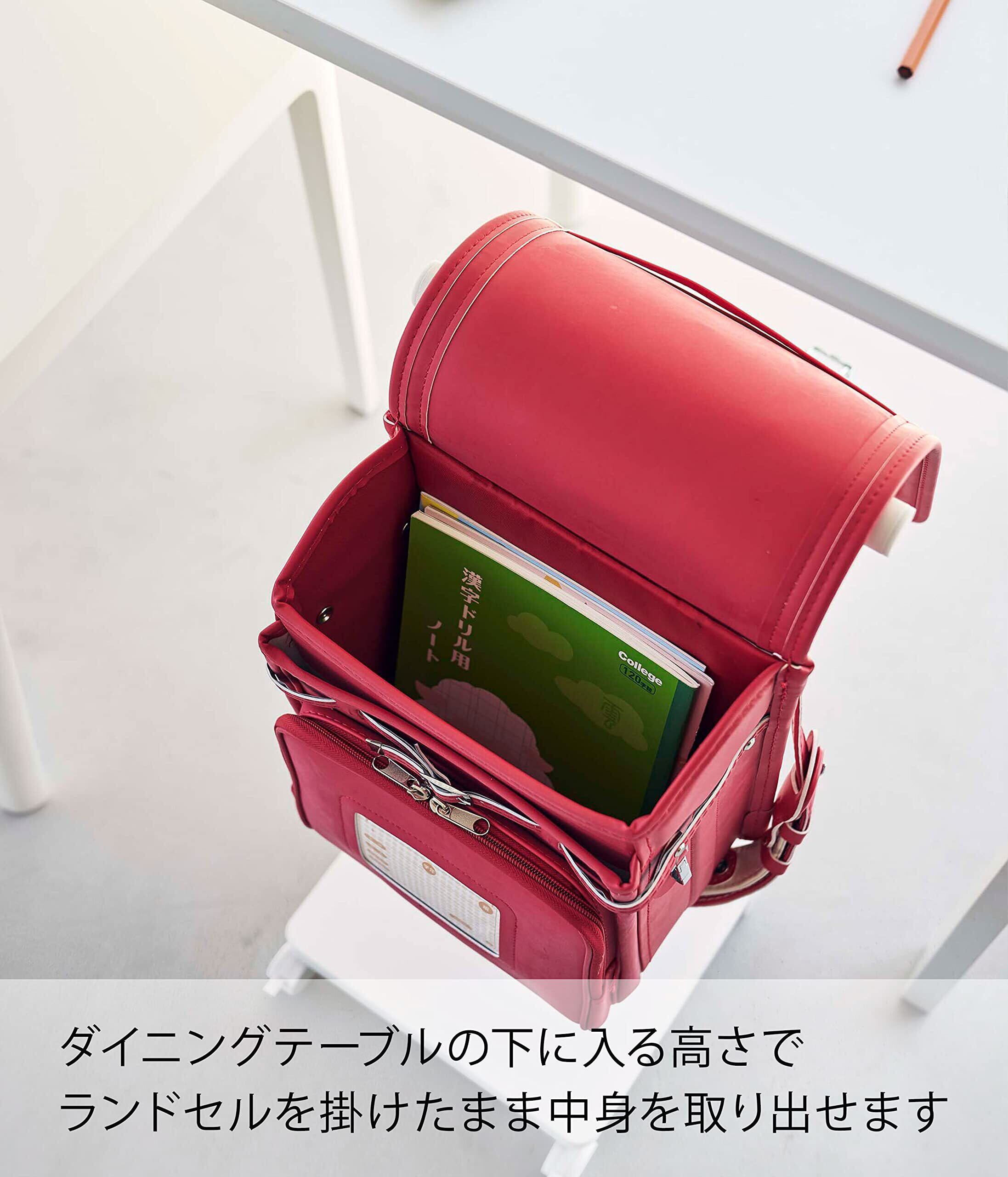 ランドセルの持ち手部分をフックに掛けても収納可能。
