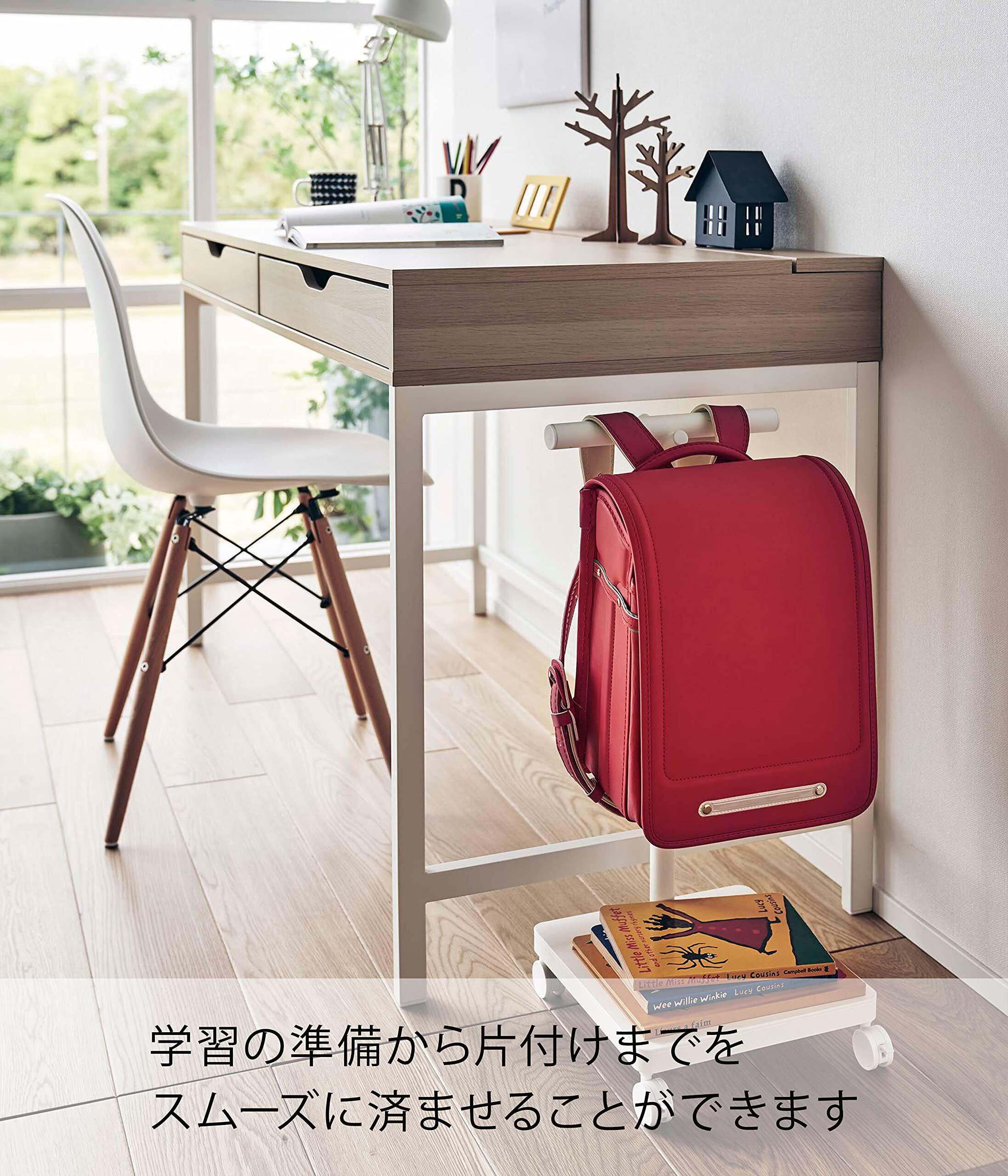 テーブルのすぐ横にランドセルを収納して、学習の準備から片付けまでをスムーズに済ませることができます。