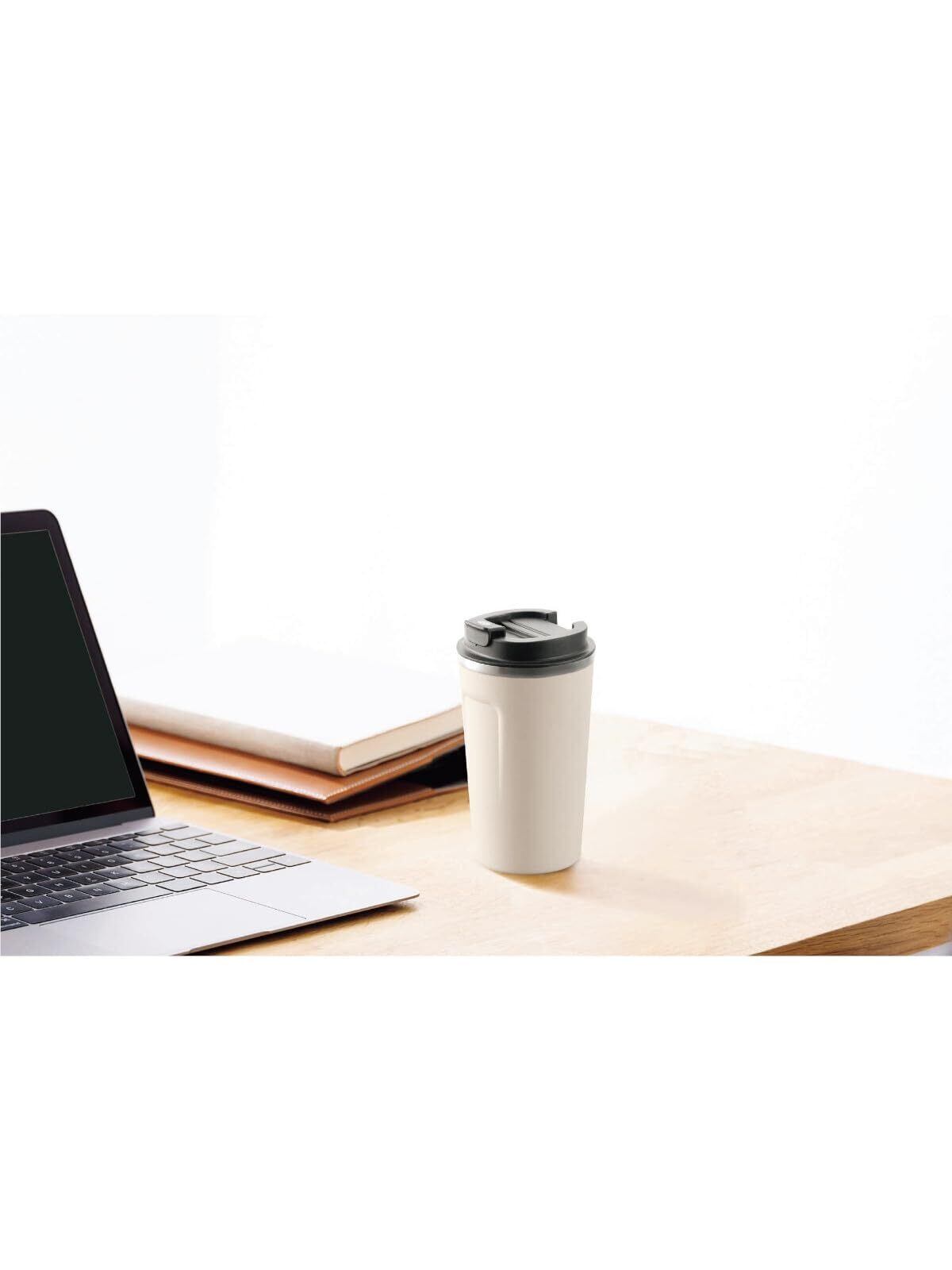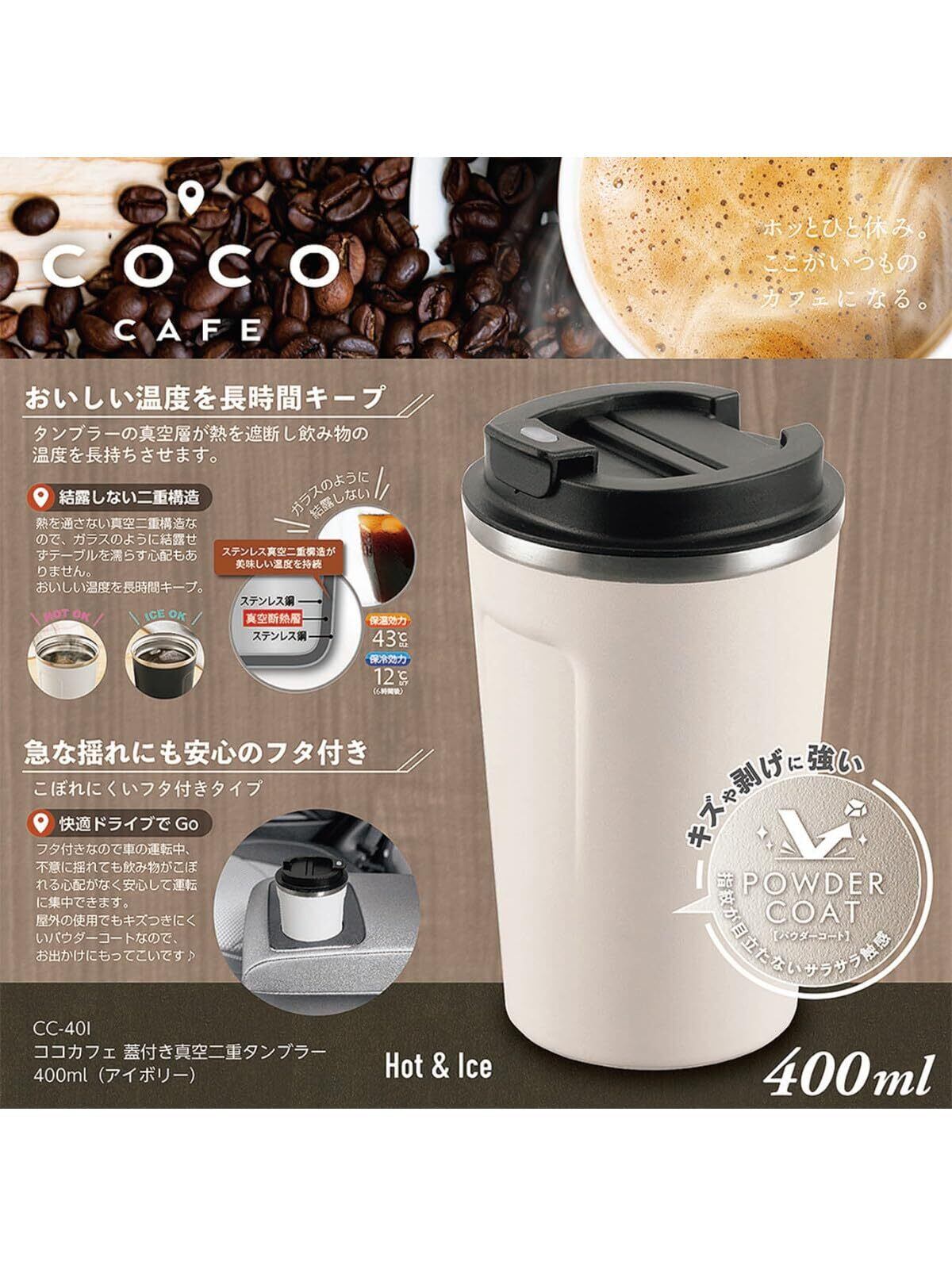 カクセー タンブラー 蓋付き 9cm×14.4cm アイボリー 400ml 真空二重 保温 保冷 パウダーコート 傷つきにくい cococafe ココカフェ CC-40I
