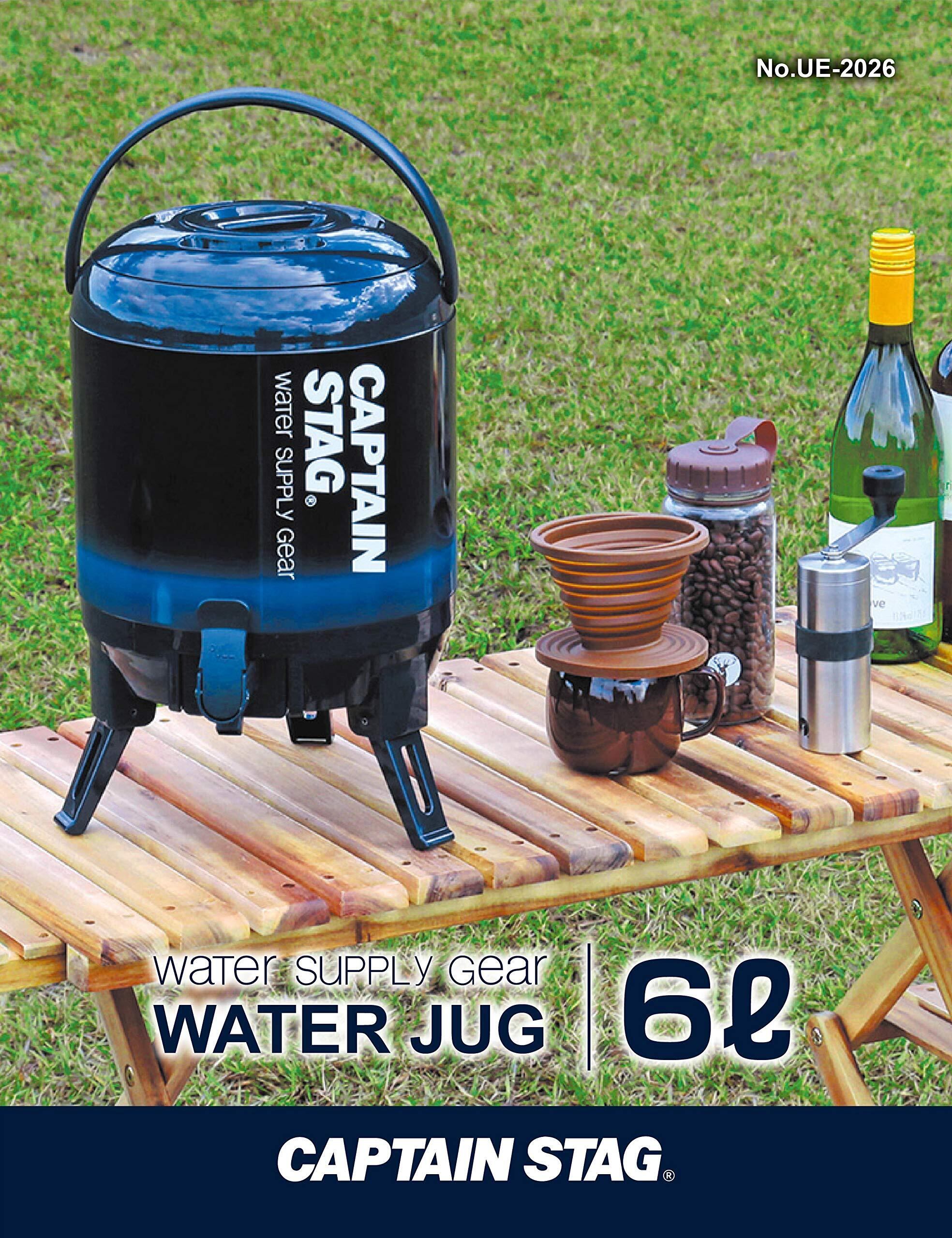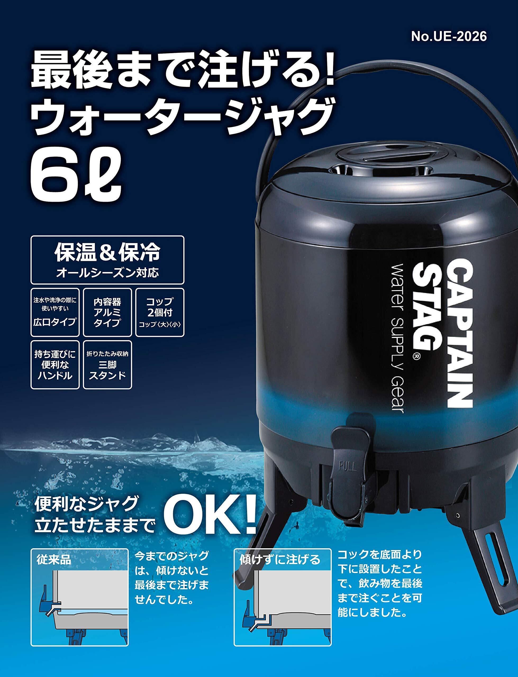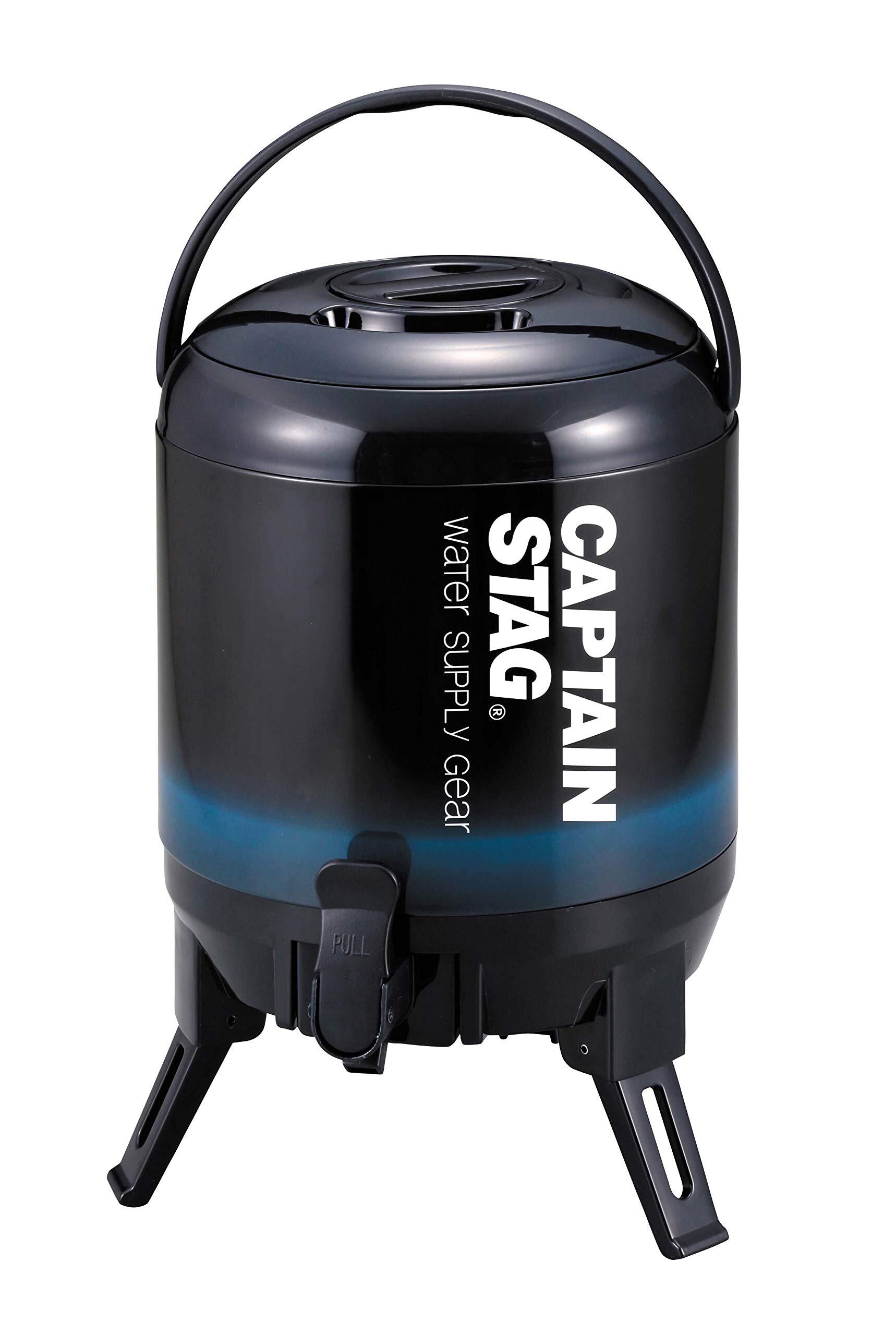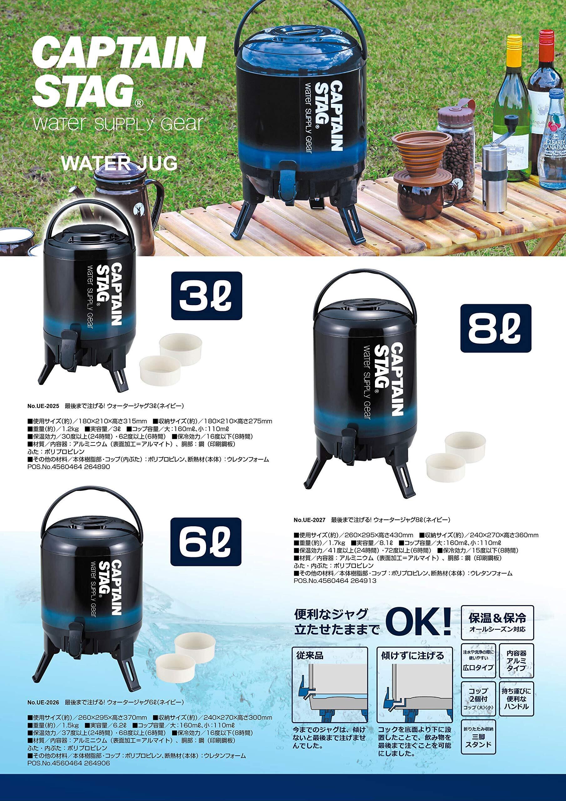 キャプテンスタッグ(CAPTAIN STAG) ジャグ タンク 最後まで注げるウォータージャグ 容量3L/6L/8L/10L 保温保冷 広口タイプ コップ付き ハンドル付き 三脚スタンド ネイビー/ビバレーデザイン