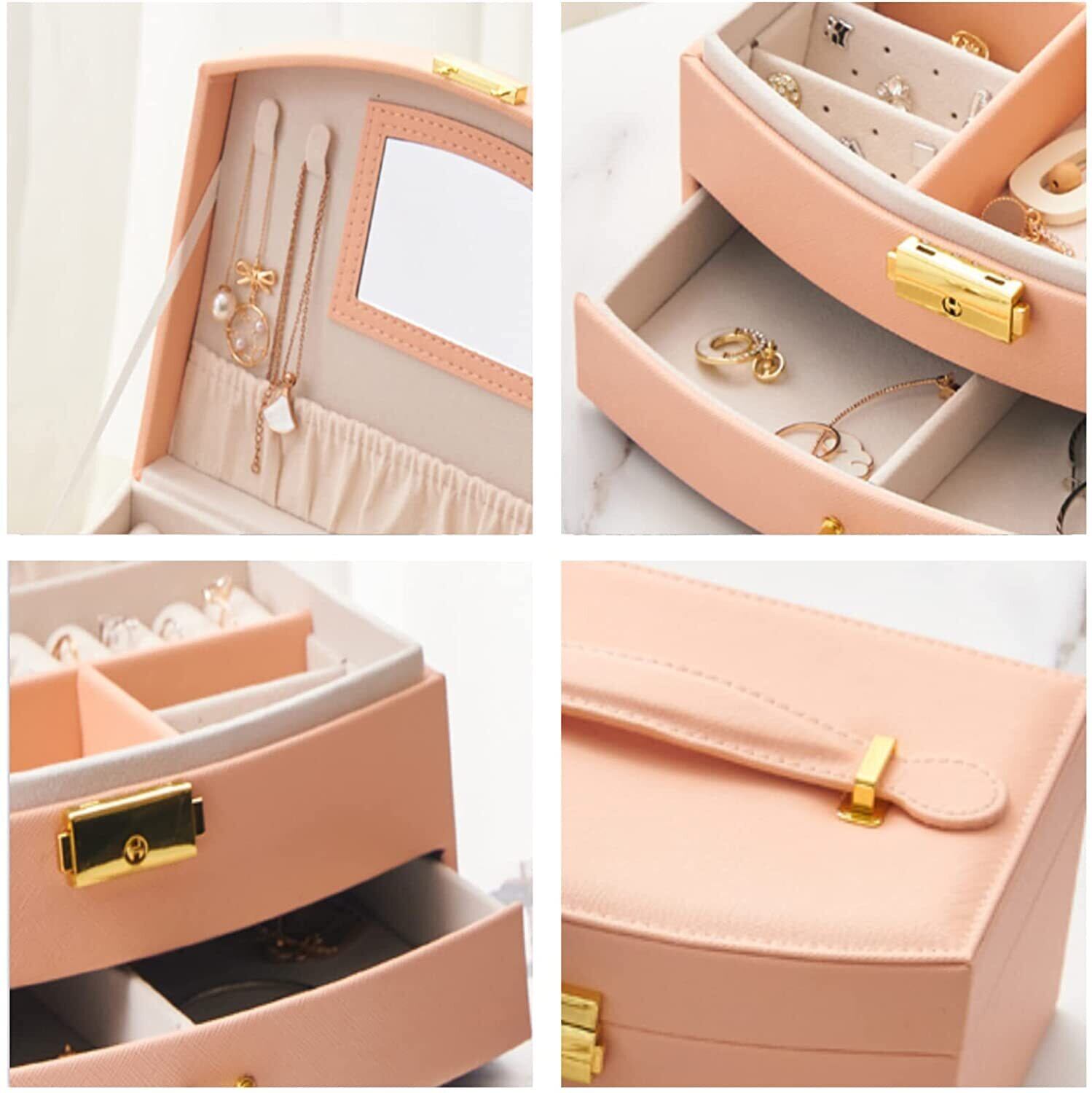 OKUSEKAY ジュエリーボックス ジュエリー収納 アクセサリーケース 女の子 女性 人気 2層 鏡付き 大容量の宝石箱 小物入れ ピアス ネックレス 指輪 イヤリング収納 母の日、クリスマス、結婚式の日、誕生日プレゼント用 (ピンク)