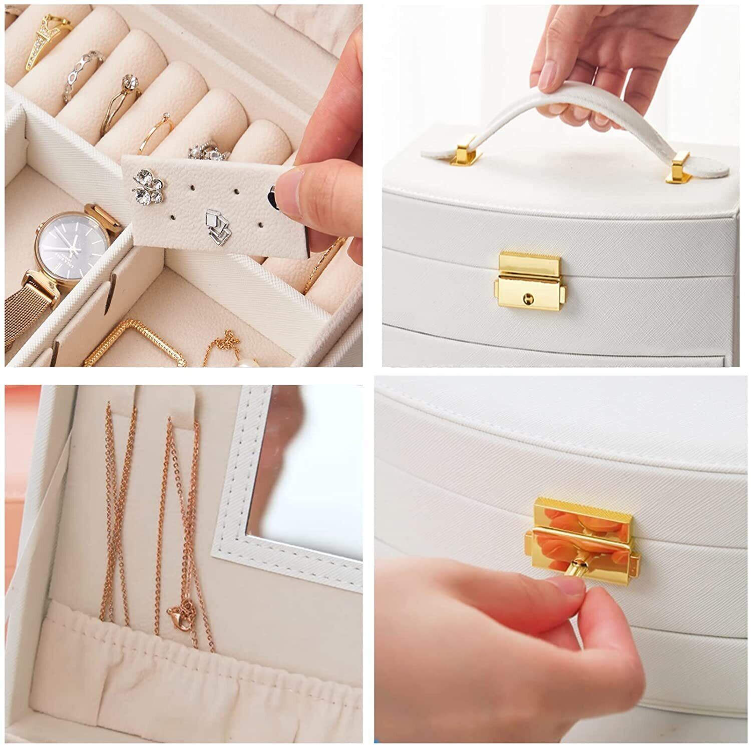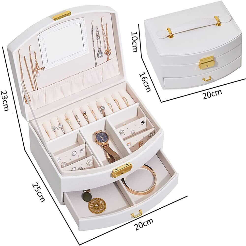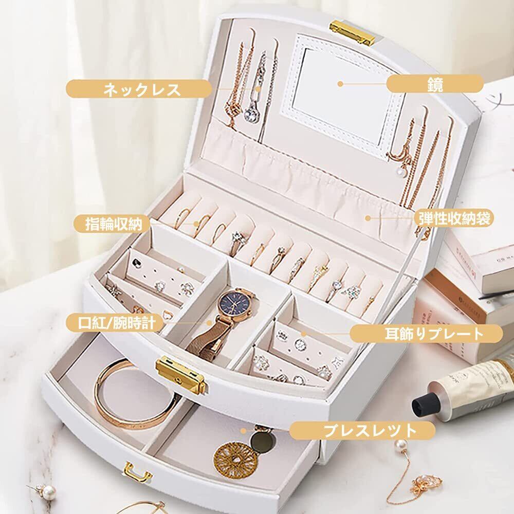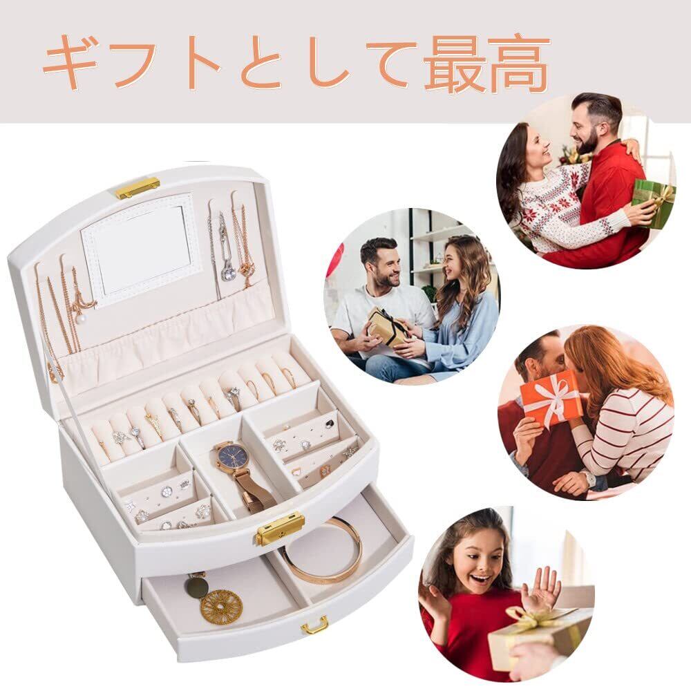 OKUSEKAY ジュエリーボックス ジュエリー収納 アクセサリーケース 女の子 女性 人気 2層 鏡付き 大容量の宝石箱 小物入れ ピアス ネックレス 指輪 イヤリング収納 母の日、クリスマス、結婚式の日、誕生日プレゼント用 (ホワイト)