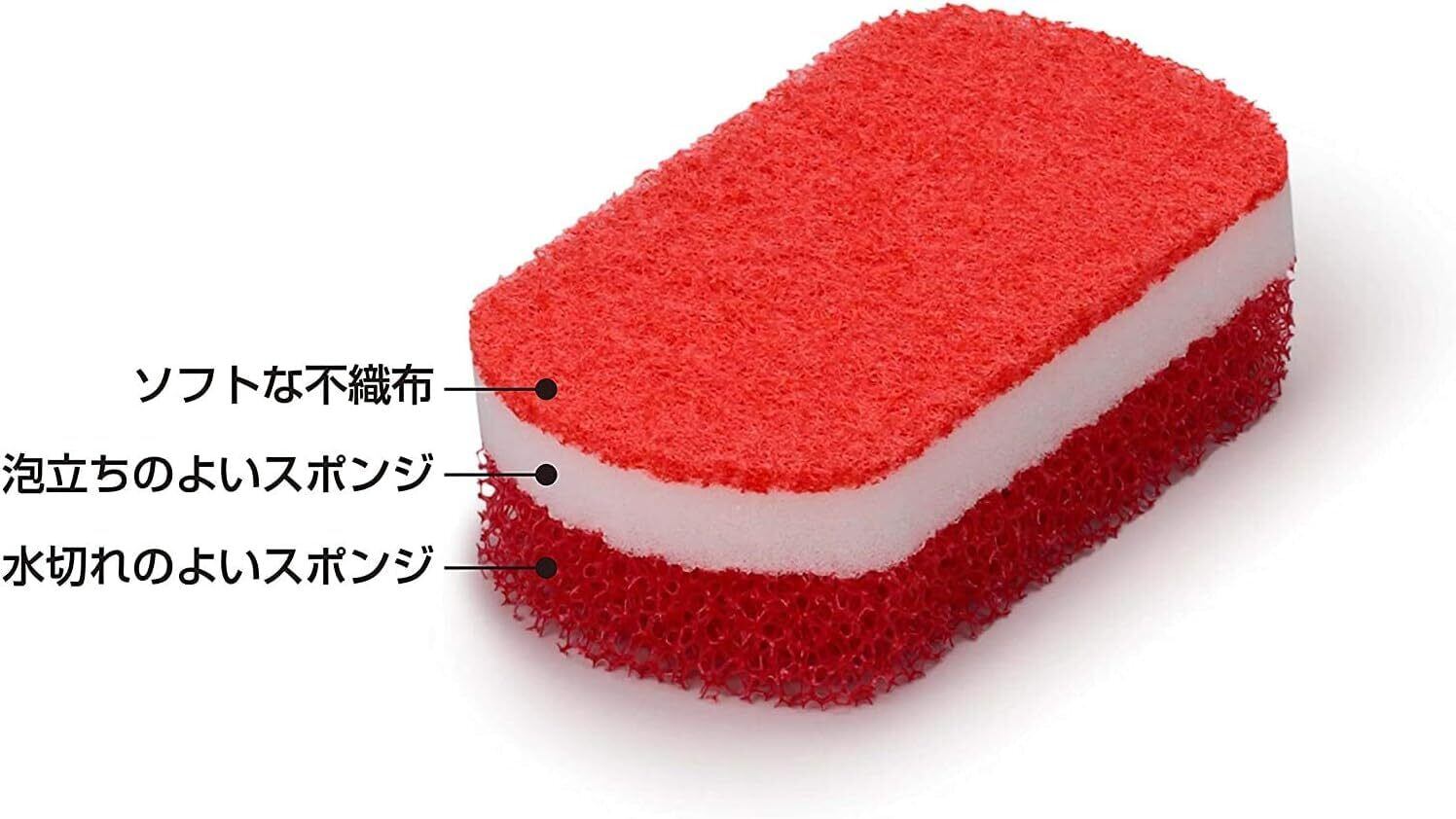 オーエ キッチンスポンジ 赤 10個セット 約縦12×横6.5×高さ3.6cm スマートホーム II トリプルスポンジ 三層 ソフト 不織布 泡立ち 油汚れ 日本製