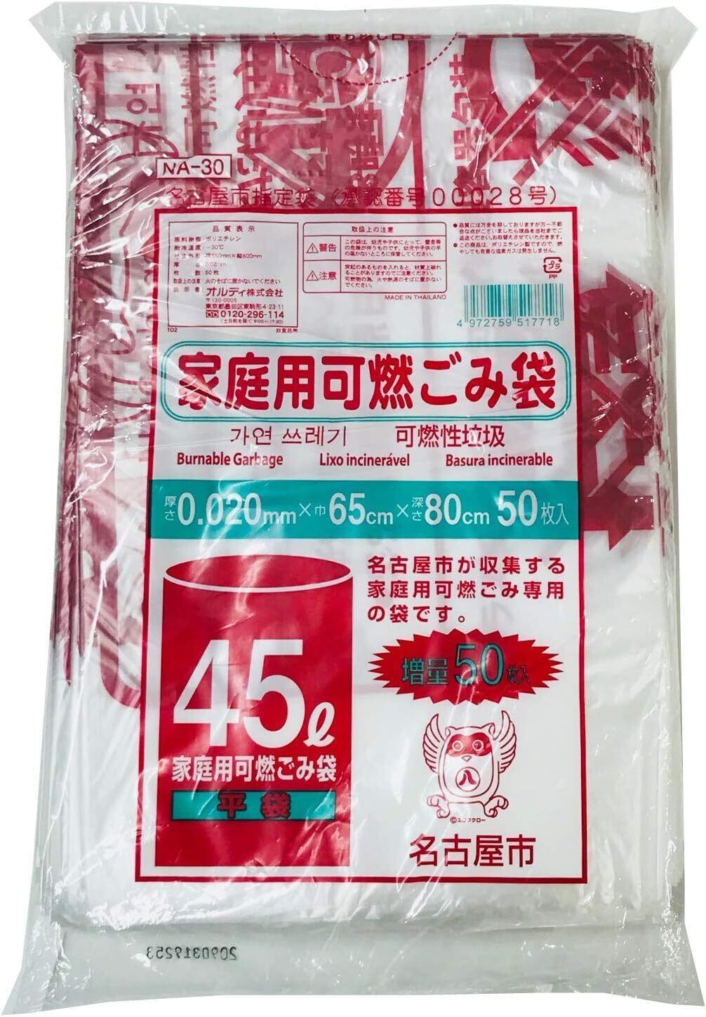オルディ ゴミ袋 名古屋市 指定袋 可燃 半透明 45L 65×80cm 厚み0.02mm 50枚入×2個セット ポリ袋 家庭用 NA-30