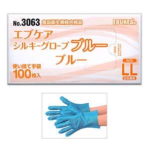 エブノ No.3063 エブケアシルキーグローブ 使い捨て手袋 ブルー 箱入 LLサイズ 100枚入