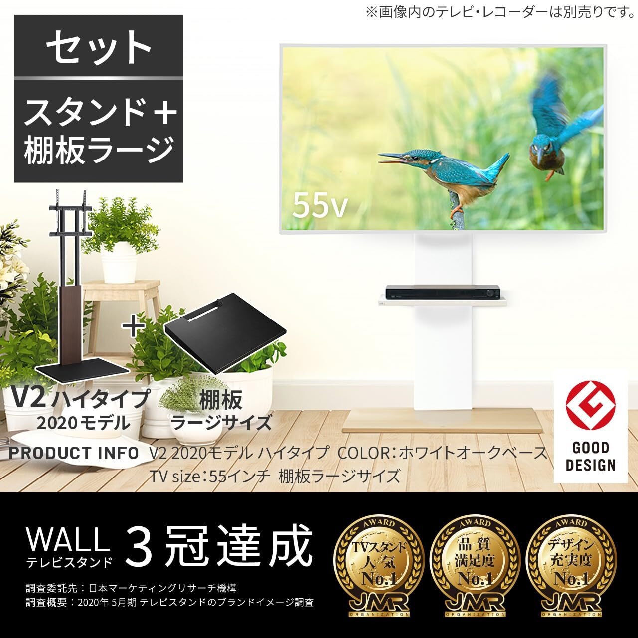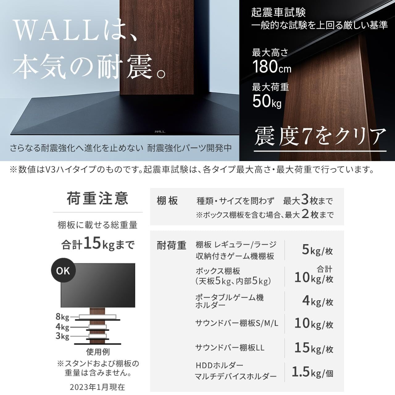 EQUALS イコールズ テレビ台 壁寄せテレビスタンド WALL V2 ハイタイプ (2020モデル) +棚板ラージサイズセット 32型〜60型対応 ウォールナット (棚板:ブラック)