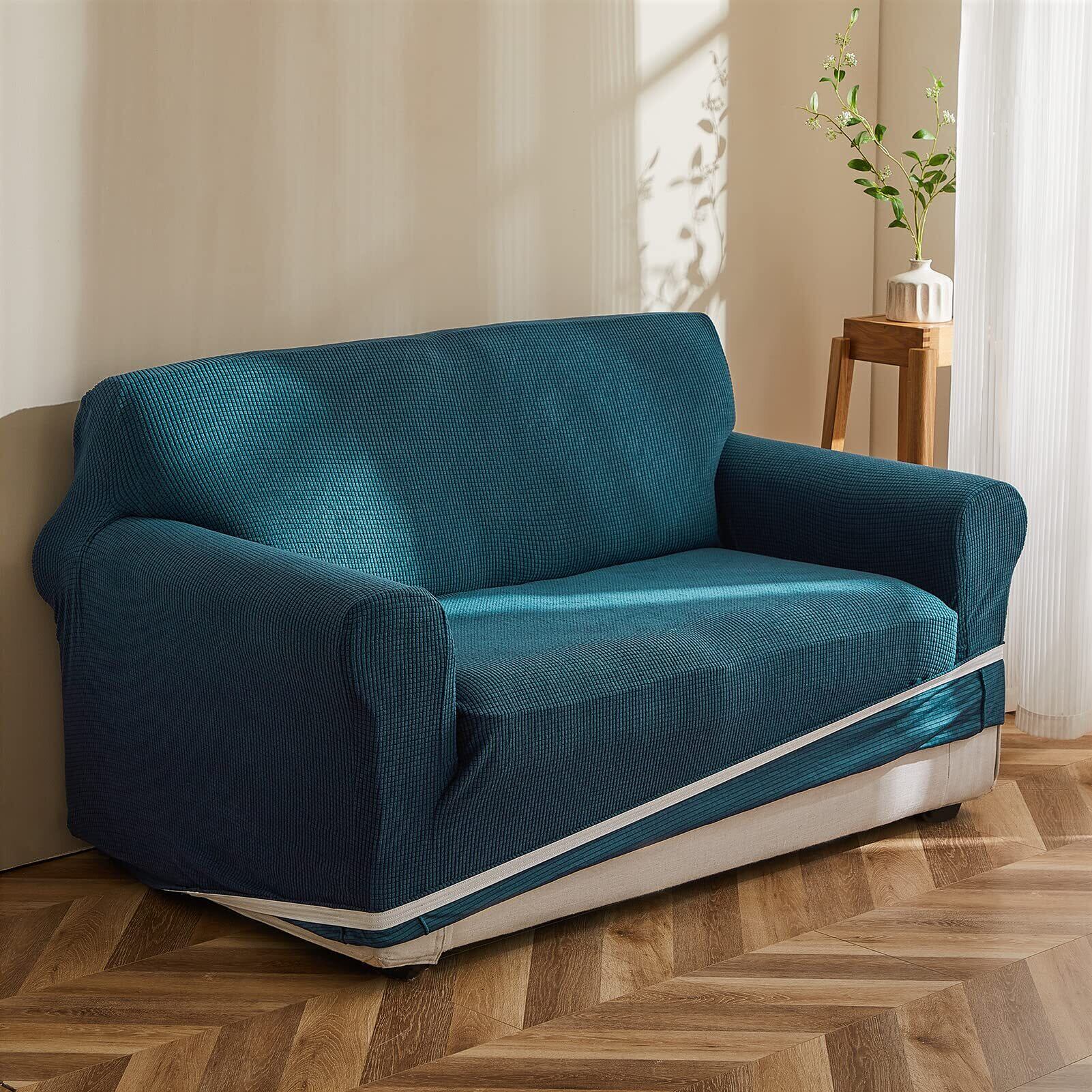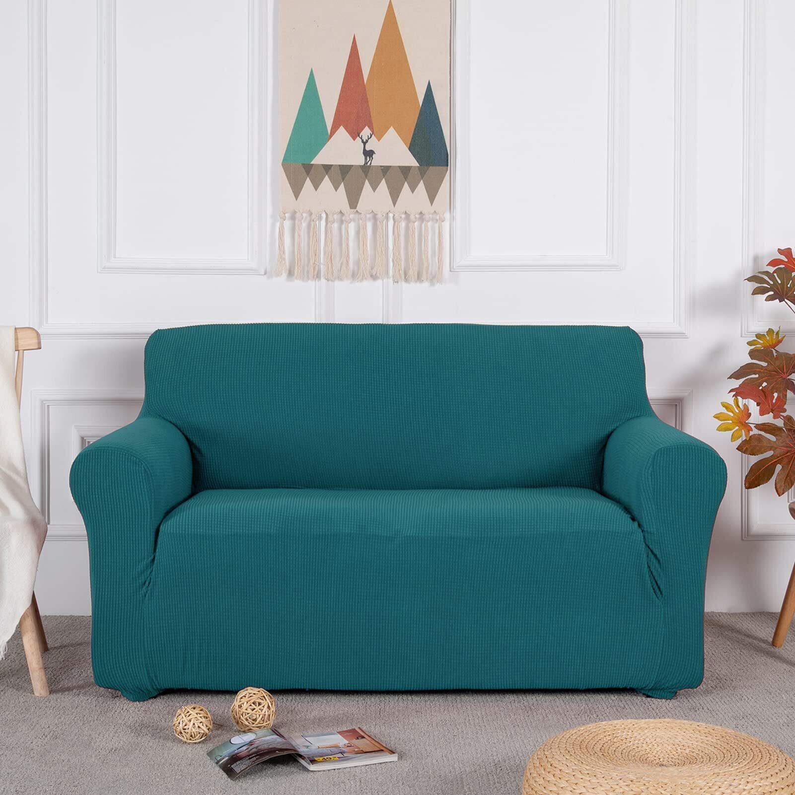 Topfinel ソファーカバー 2人掛け 肘付き 無地 北欧風 ストレッチ フィットタイプ 伸縮素材伸び良く 滑り止め 柔らかい 犬 猫 傷 防止 超便利 四季適用 (ピーコックブルー)