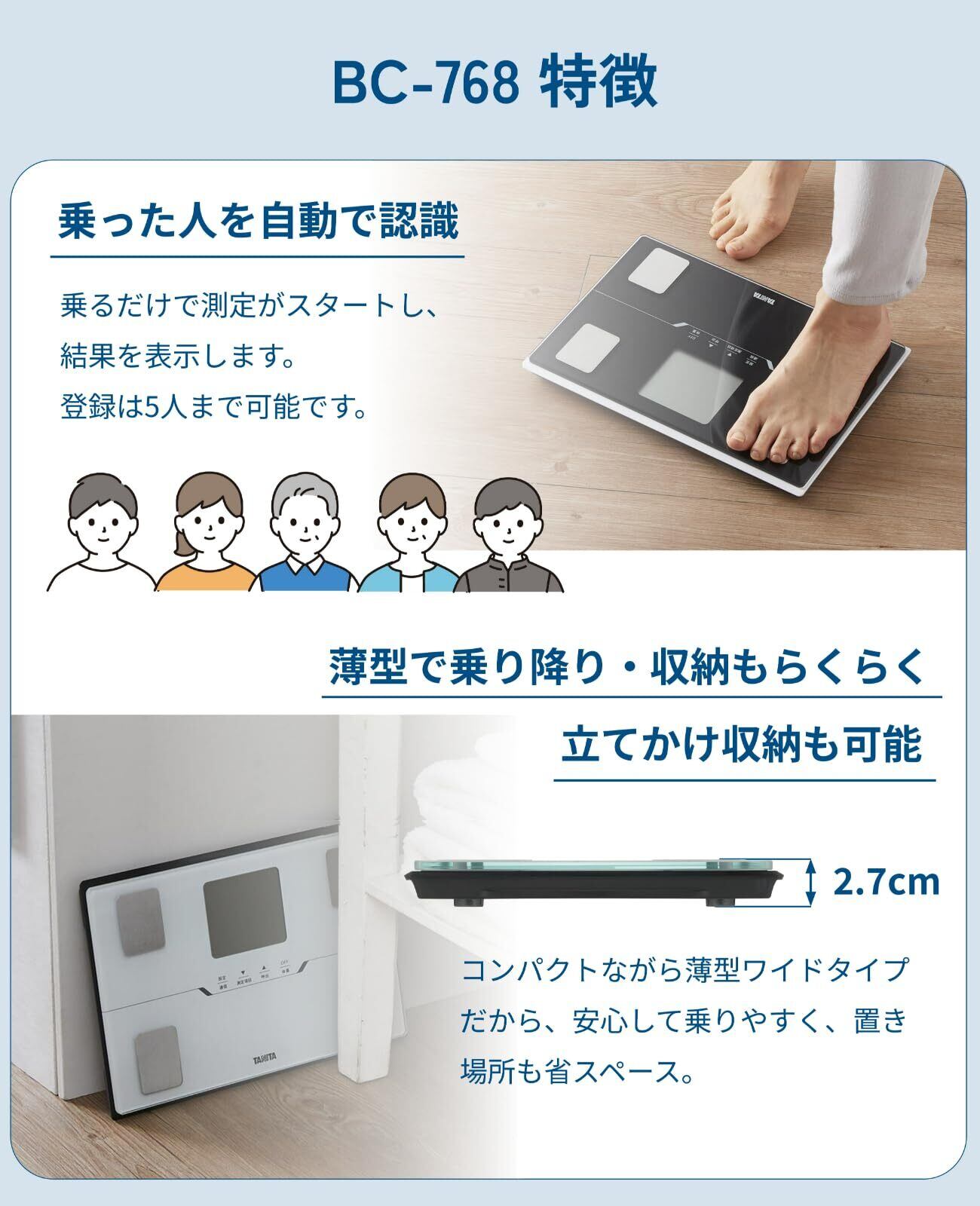 タニタ 体重計 体組成計 スマホ連動 ヘルスメーター BC-768 ブラック 【体脂肪率/内臓脂肪レベル/筋肉量/基礎代謝量/体内年齢/推定骨量/BMI/スマホ連動/乗るピタ】