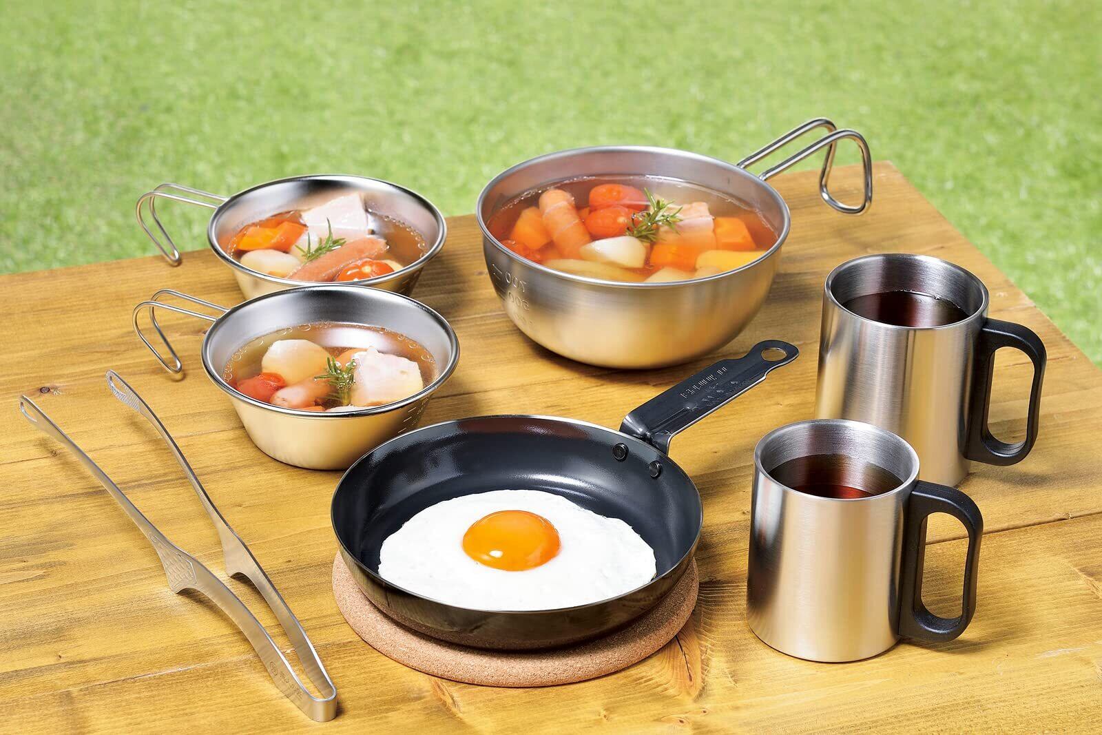ステンレス製で落としても割れず、軽量でアウトドアに好適