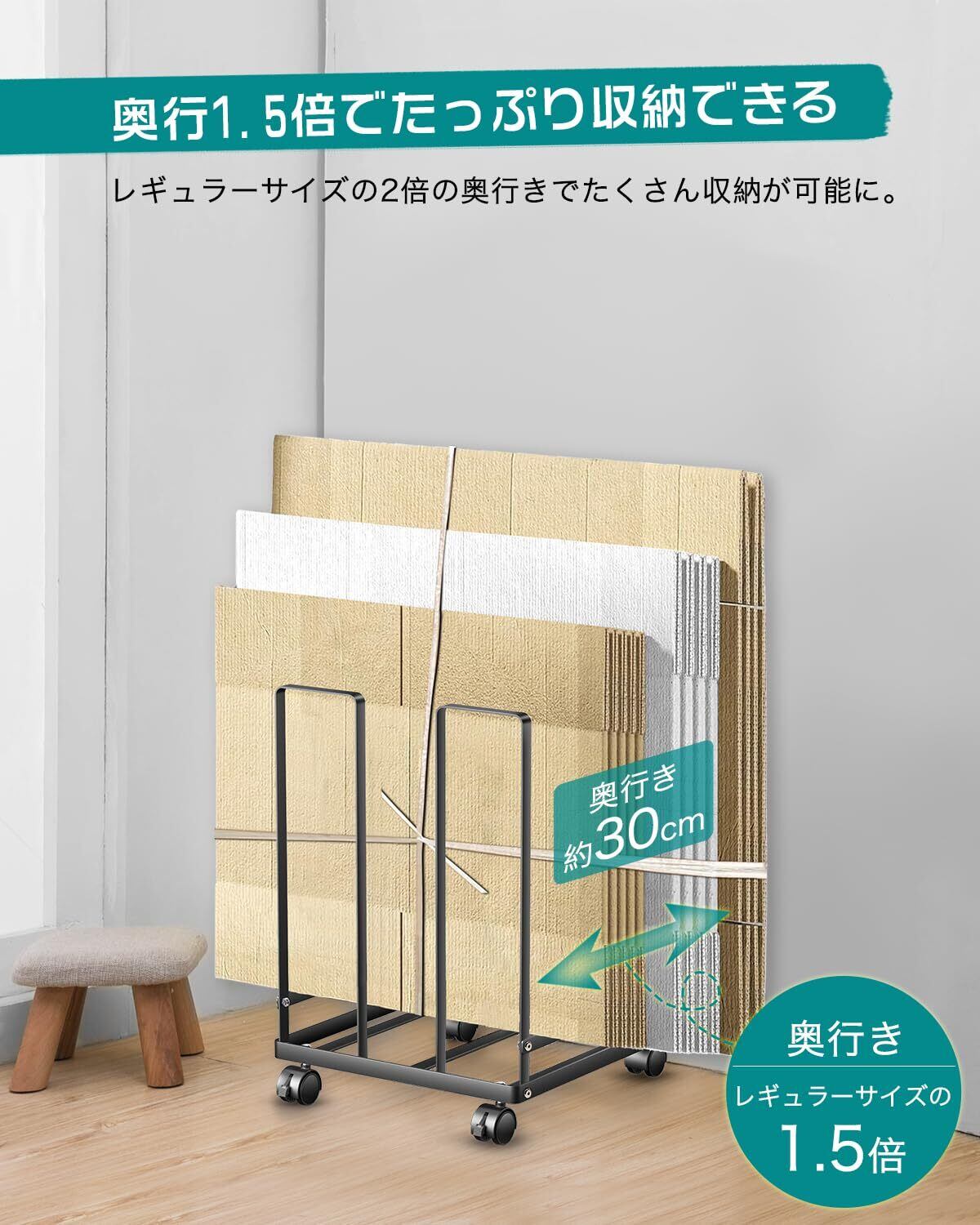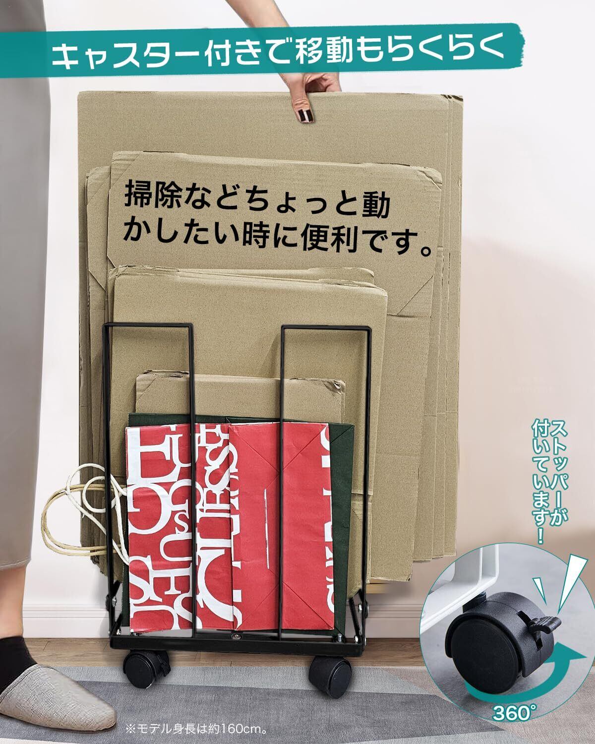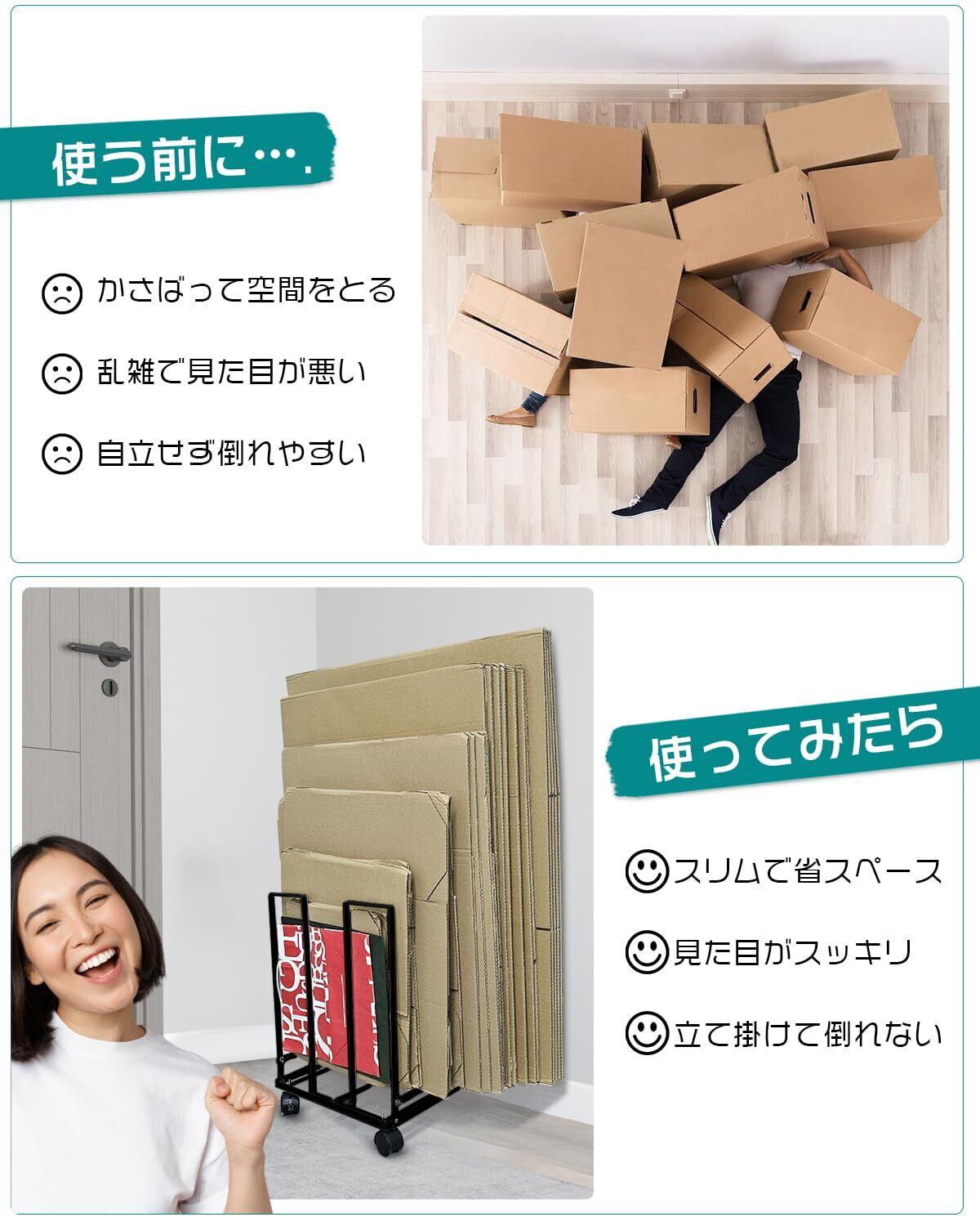 「ダンボールをスッキリ収納」 ダンボールストッカー ダンボールラック ダンボール収納 ダンボール置き 段ボール入れ キャスター付 簡単に束ねる 最大収納枚数30枚 省スペース キッチン 玄関 整理整頓 便利グッズ ブラック