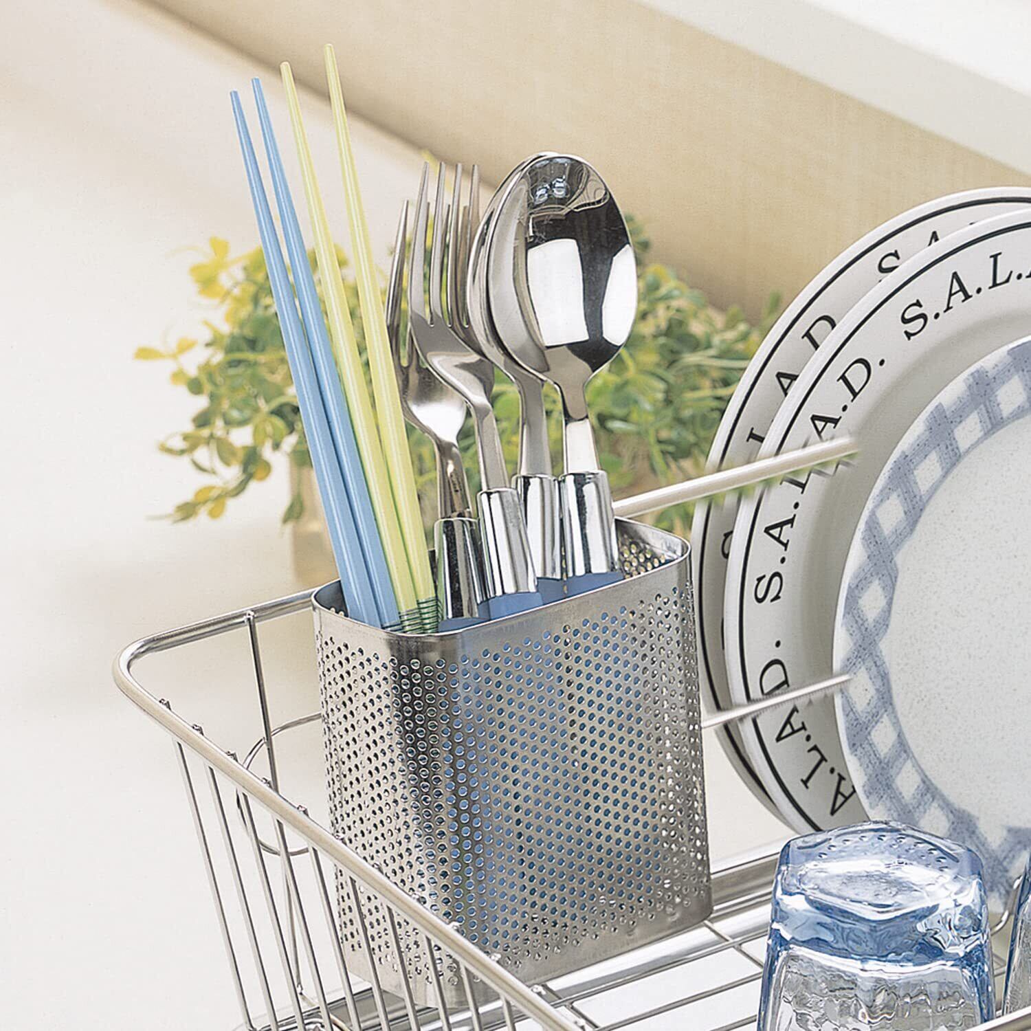 〇水切りバスケットと組み合わせて便利に使えます。 〇お箸やスプーンなどの水切りに。