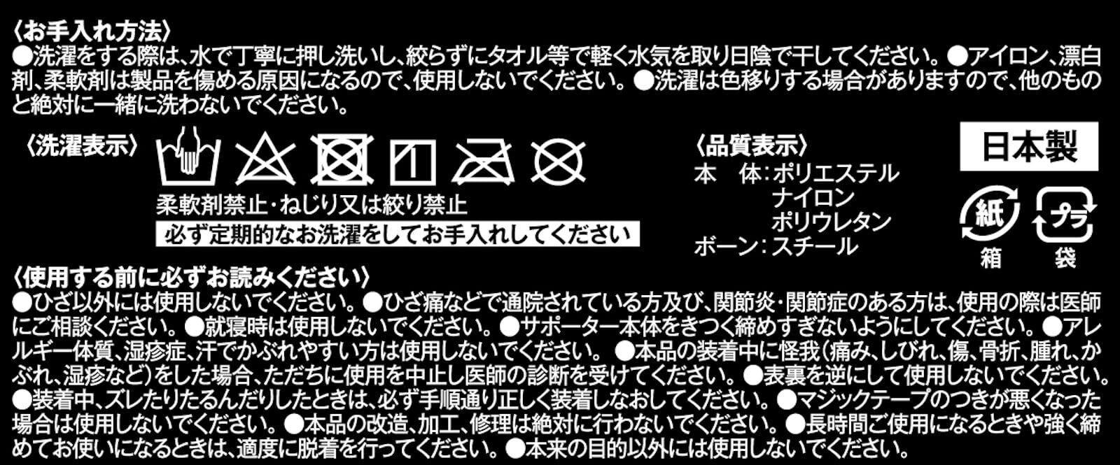 ・本品の装着中に怪我(痛み、しびれ、傷、骨折、腫れ、かぶれ、湿疹など)をした場合、ただちに使用を中止し医師の診断を受けてください。