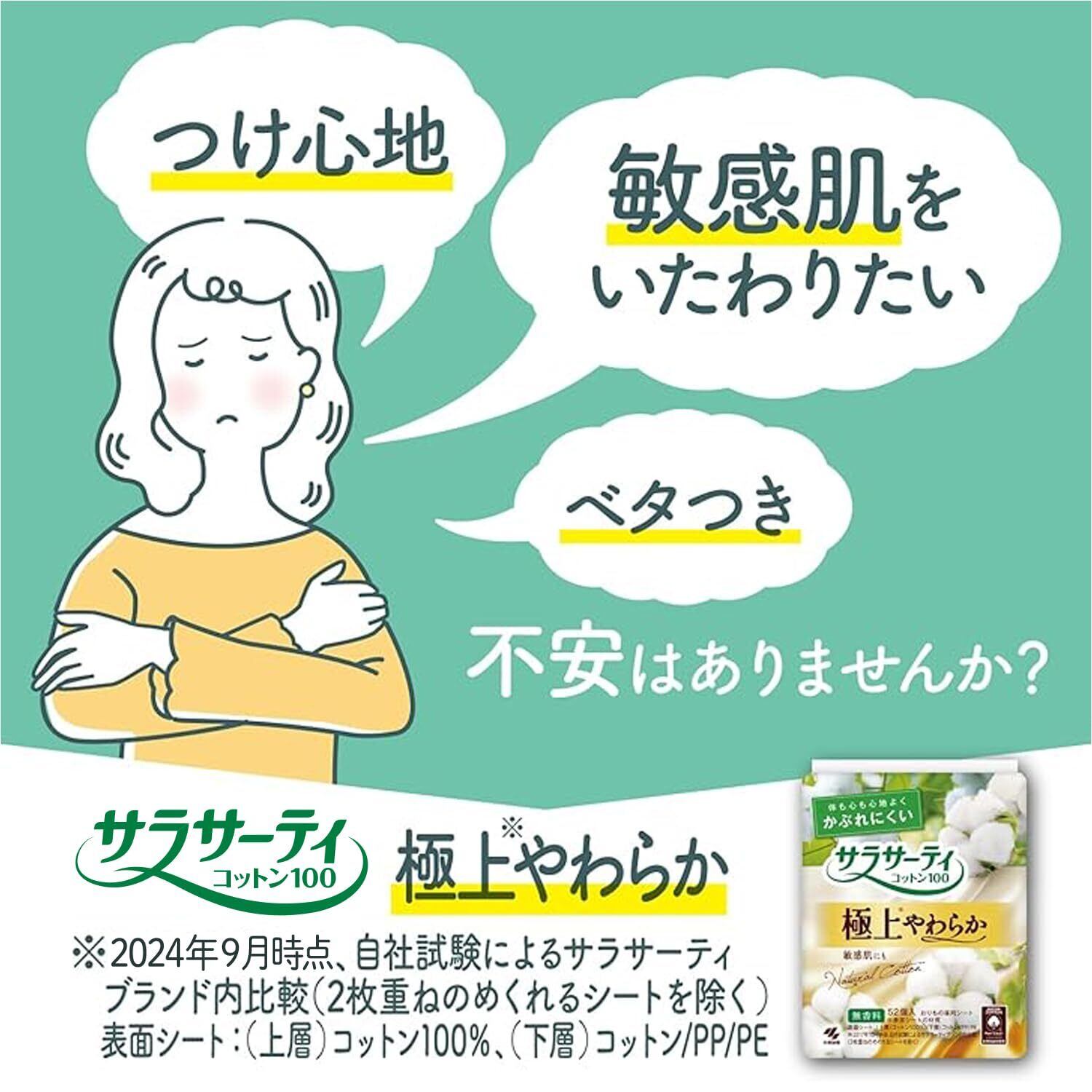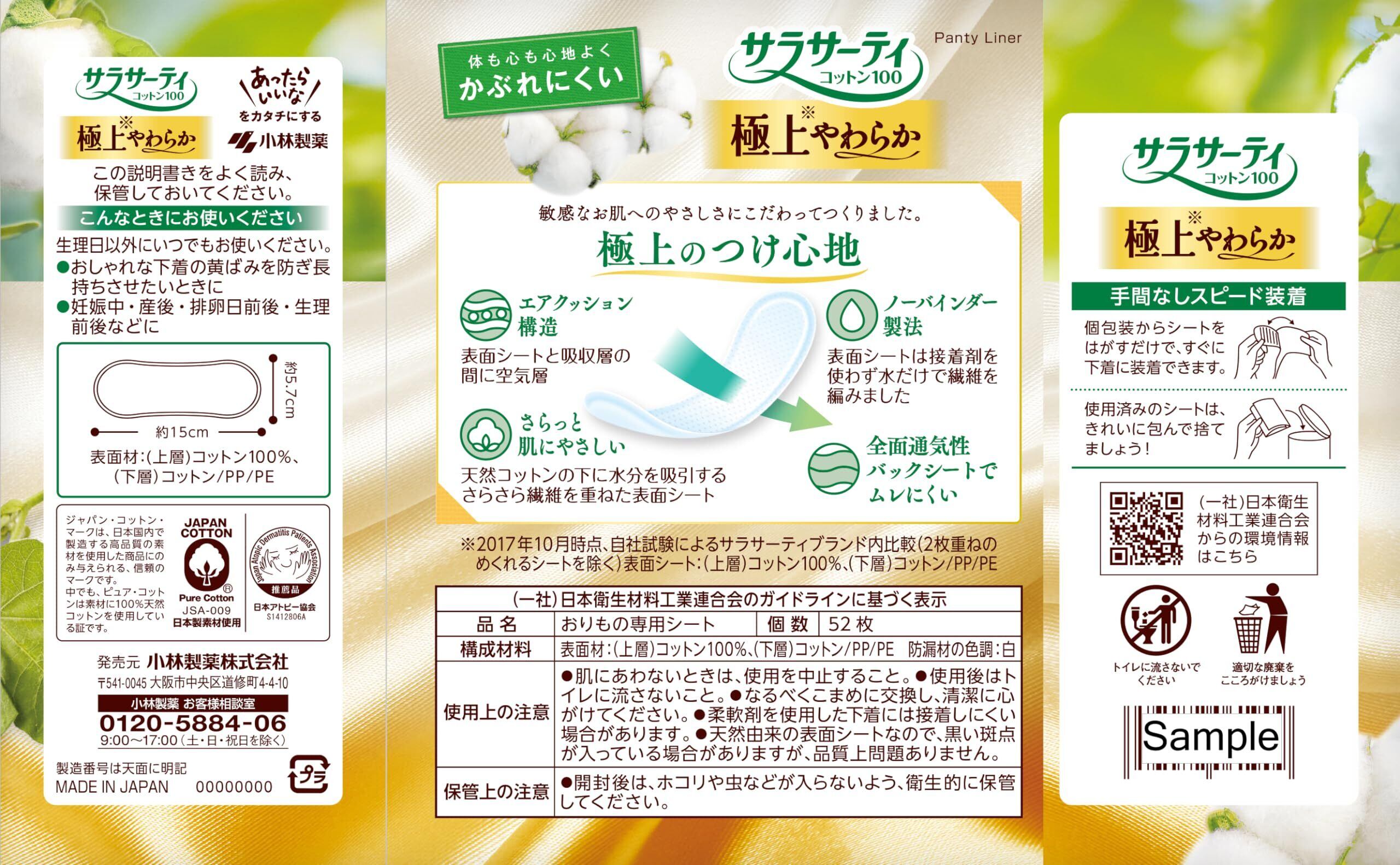 サラサーティ 【まとめ買い】 コットン100 かぶれにくい 極上やわらか 無香料 おりものシート 52コ入×2個