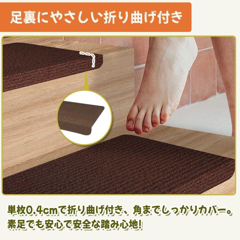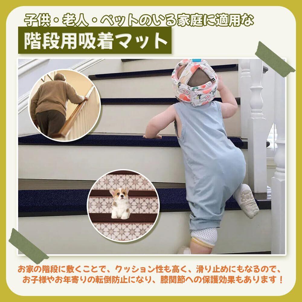階段マット 吸着階段マット 折り曲げ付階段マット 階段用ステップマット 滑り止めマット 階段クッション 階段カーペットマット 階段カーペット 階段滑り止めマット 防音 キズ防止 防寒 ずれない 転倒防止 カットOK 洗える ペット シニア 足腰負担軽減 安全対策 四季通用