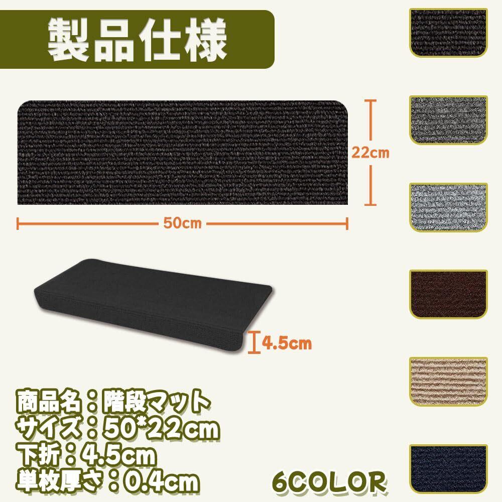 【階段マットデータ】✿サイズ:長さ50cm*幅20cm*折りの幅4.5cm。✿厚さ:4mm。✿材質:表面:ポリエステル。裏面:ポリウレタン。✿色:ベージュピンク/ライトグレー/ダークグレー/ダークブルー/ブラック/ブラウン。暑い日は踏み心地がよい、冬は寒さを防ぐ、オールシーズン快適にお使いいただけます。