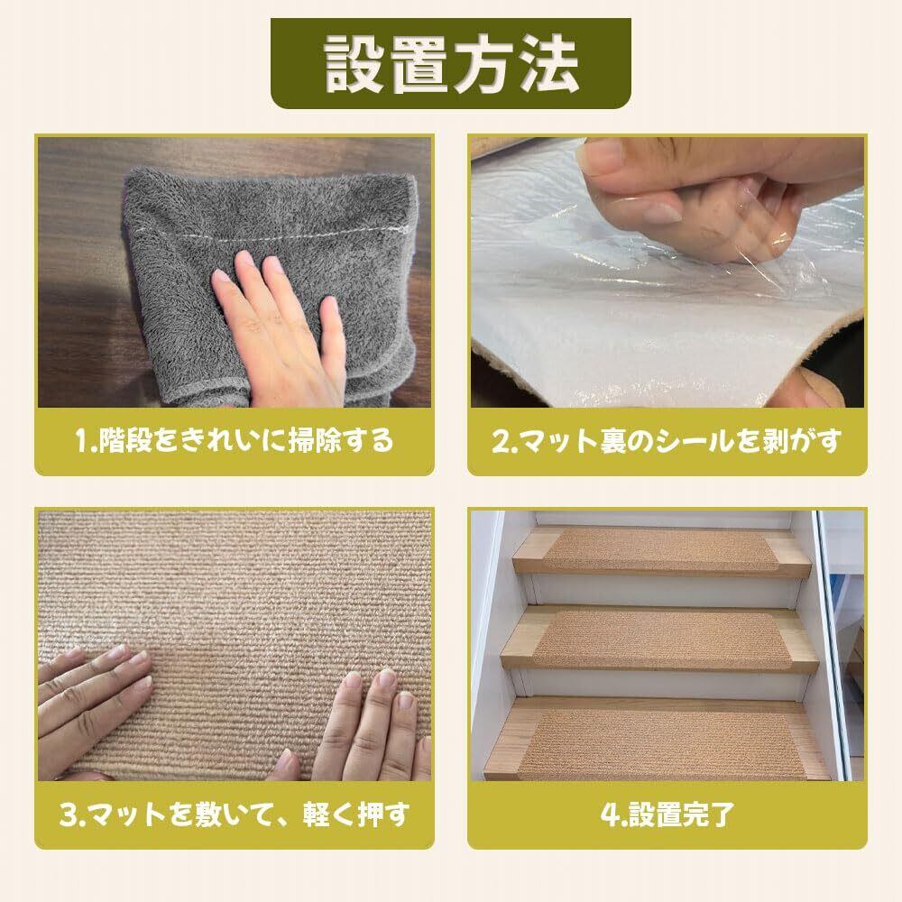 【階段マットの必要性】厚手でしっかりした生地を使用しているので防音効果が抜群、いつも気になる足音を軽減できます。階段の上り下りの騒音対策や衝撃も緩和され足腰にも優しいです。和室、キッチン、リビング、玄関、オフィス、店舗、喫茶店などの階段に対応する。