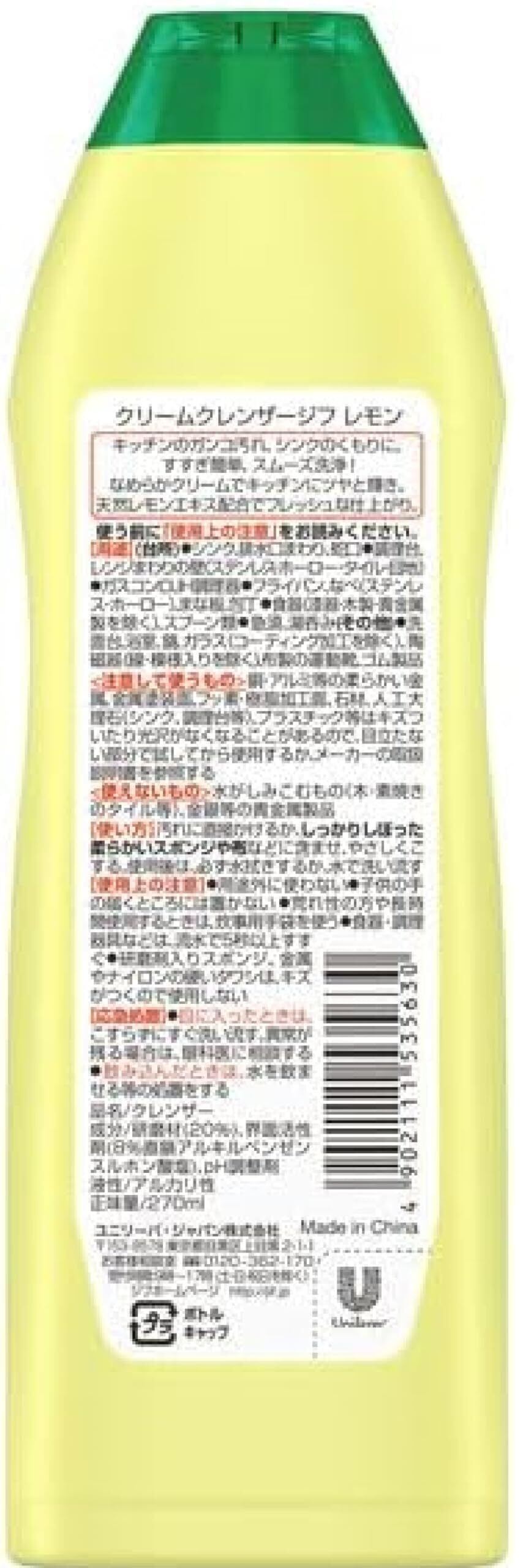 クリーム クレンザー ジフ レモン 270ml × 1個 キッチンクリーナー シンク コンロ 浴室 清潔 便利 かんたん クリーン 【オリジナルレジ袋1枚付】お試し