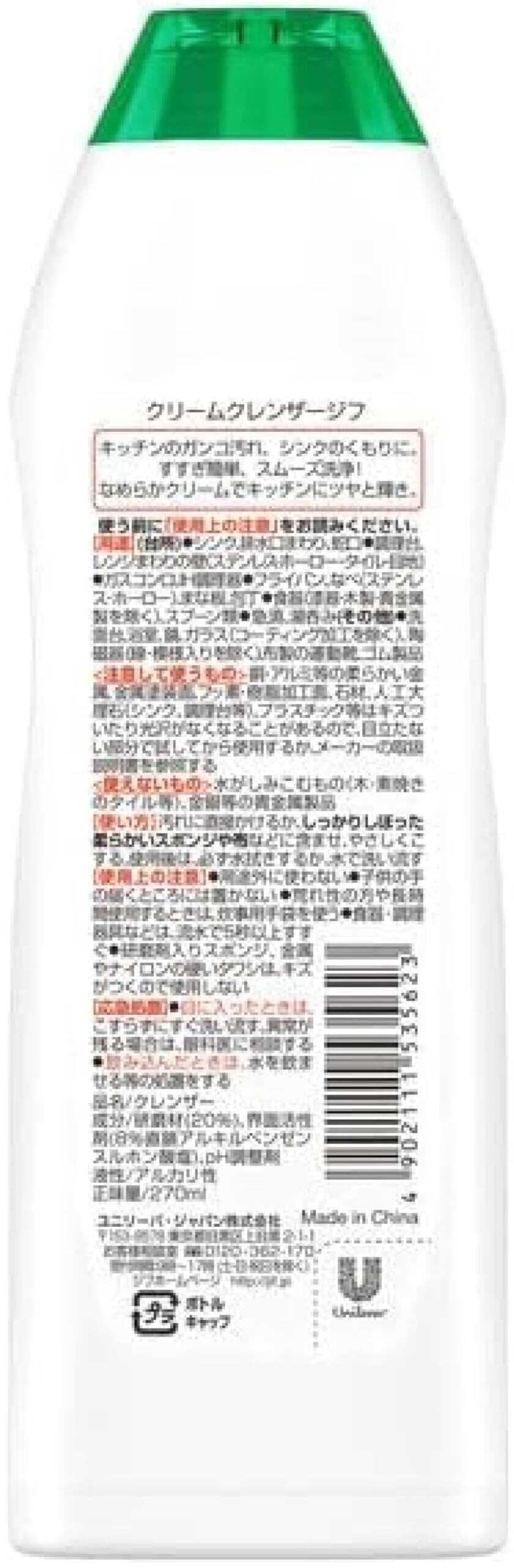 【まとめ買い】 クリーム クレンザー ジフ 270ml × 2個 キッチンクリーナー シンク コンロ 浴室 清潔 便利 かんたん クリーン 【オリジナルレジ袋1枚付】お試し