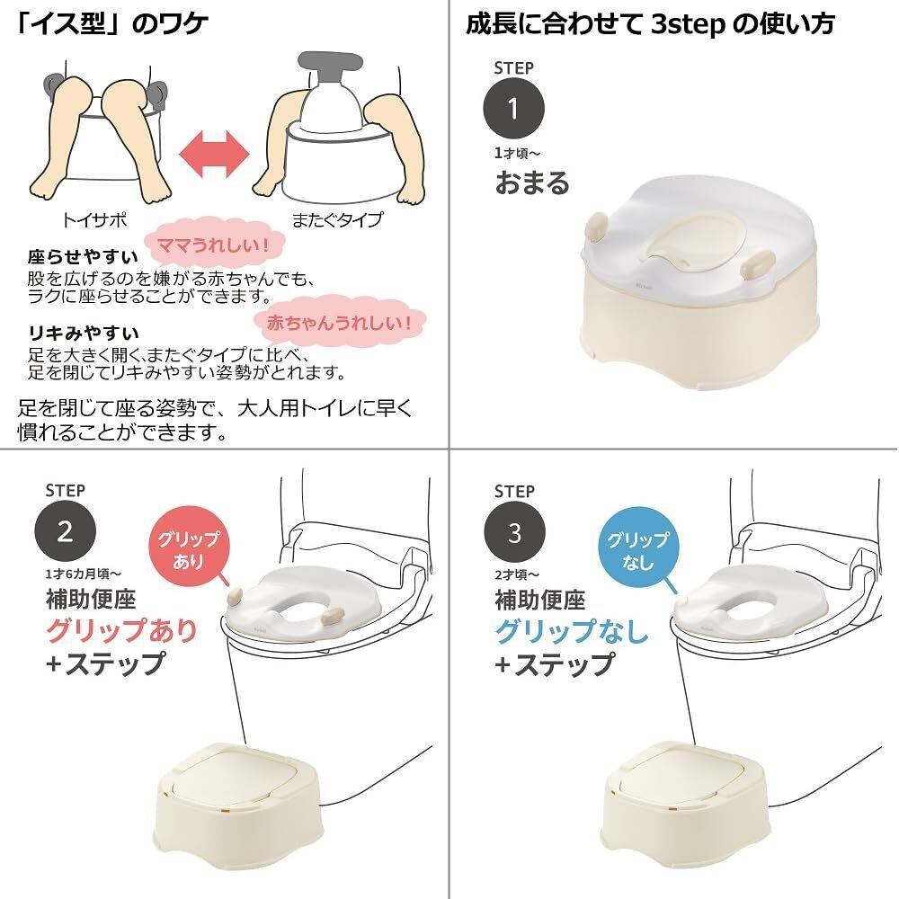リッチェル トイサポ おまる ベージュ 抗菌加工 おまる:1才頃~、補助便座(グリップ付):1才6カ月頃~4才頃、補助便座(グリップなし):2才頃~4才頃、ステップ:1才6カ月頃~6才頃