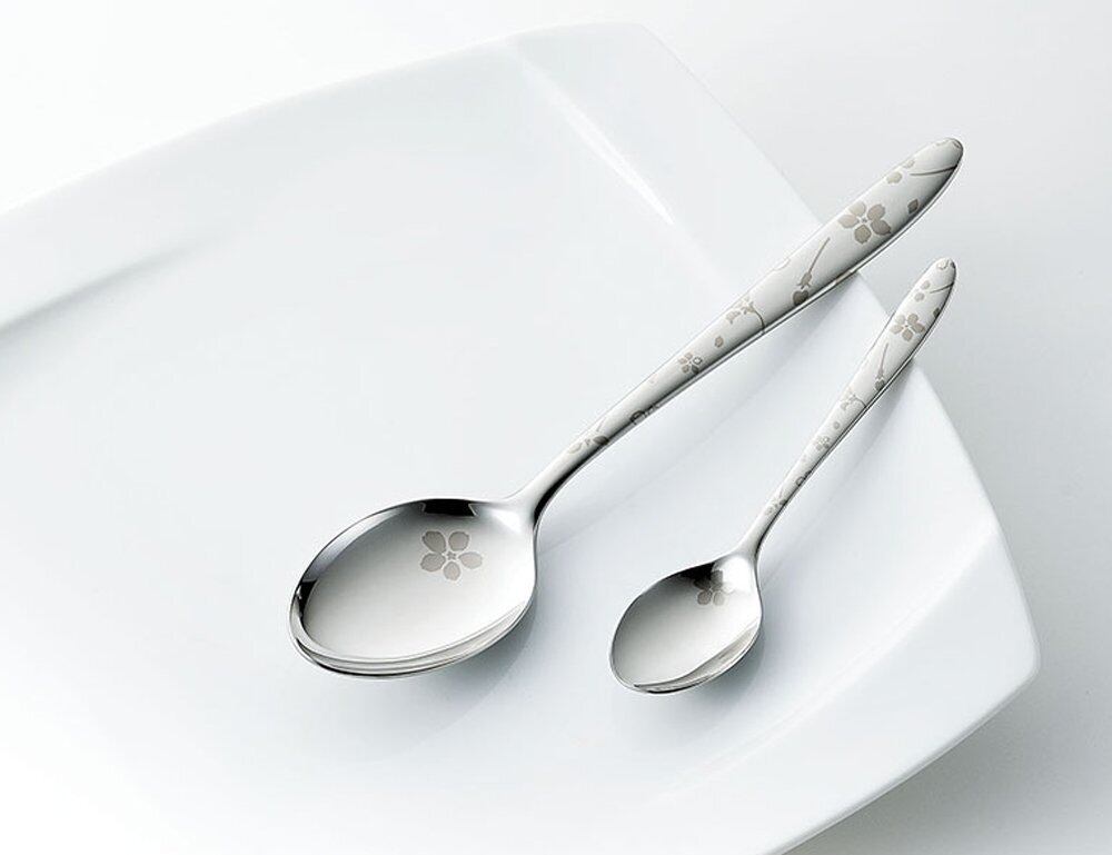 伝統の技と美の調和。なめらかに磨き上げた鏡面に幻想的な桜の花びらが舞う、個性際立つカトラリー