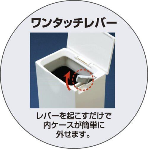 コンパクトでスタイリッシュだから見た目も気にならない! ○コンパクトでスタイリッシュなフォルムなので一見ゴミ箱とは分からずトイレ空間の邪魔になりません。○ワンタッチレバーで内ケースが外れ交換が簡単!○中のビニールが見えないのもポイントです。