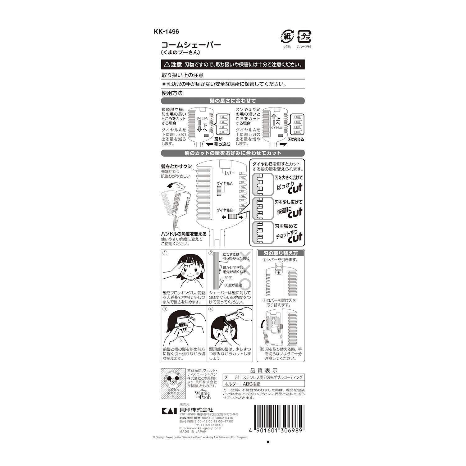 Kai 貝印 コームシェーパー(くまのプーさん) 肌色 1個 (x 1)