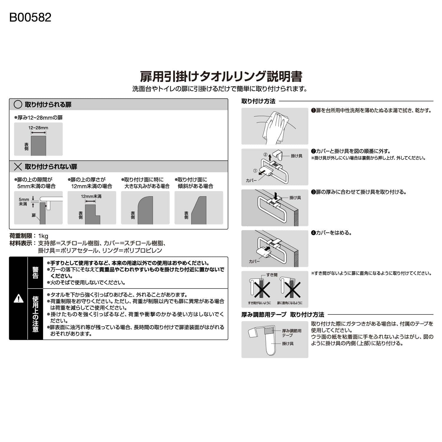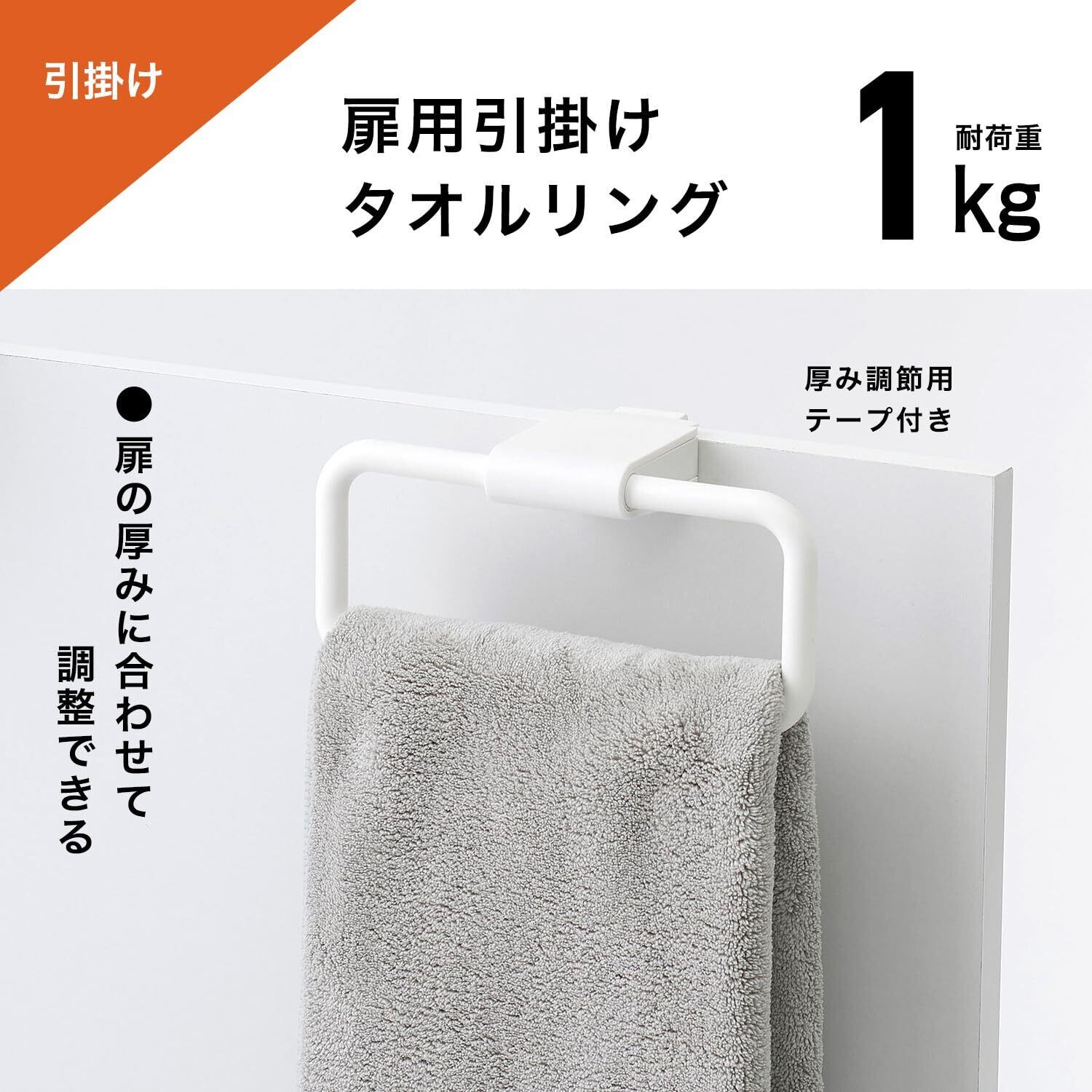 扉用 引っ掛け タオルリング 全長 18cm(干幅16cm) 耐荷重1kg ホワイト
