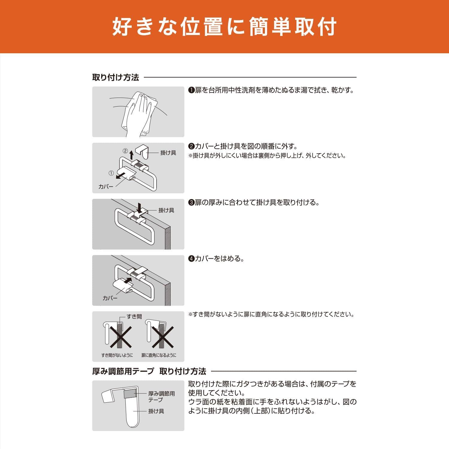 厚み調節用テープ付き。扉の厚みに合わせて調節できます。