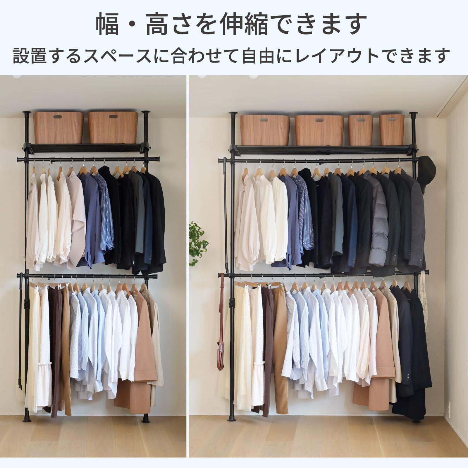 山善「突っ張りハンガーラック ダブル伸縮棚付き WJT-775R」