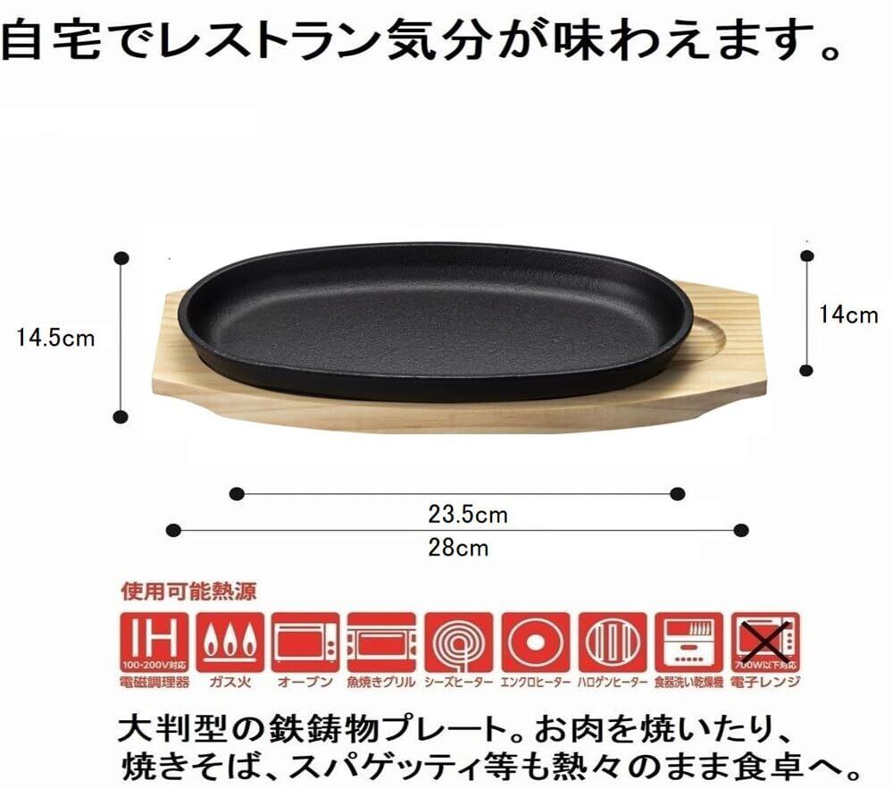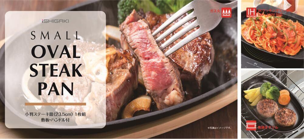 イシガキ 鉄鋳物 小判 ステーキ皿 1枚 敷板 ハンドル付き 4542