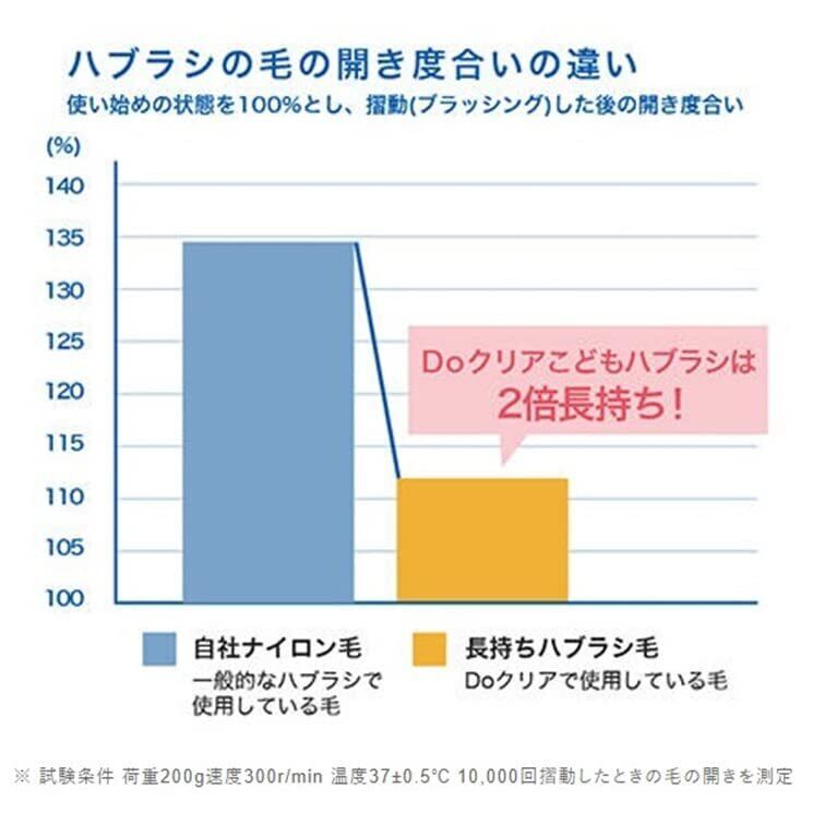 毛が開きにくい「長持ちハブラシ毛」採用。人間生活工学設計で自然に正しい持ち方ができます。歯や歯ぐきを傷つけず、ソフトな使用感でしっかりプラーク(歯垢)を取り除きます。