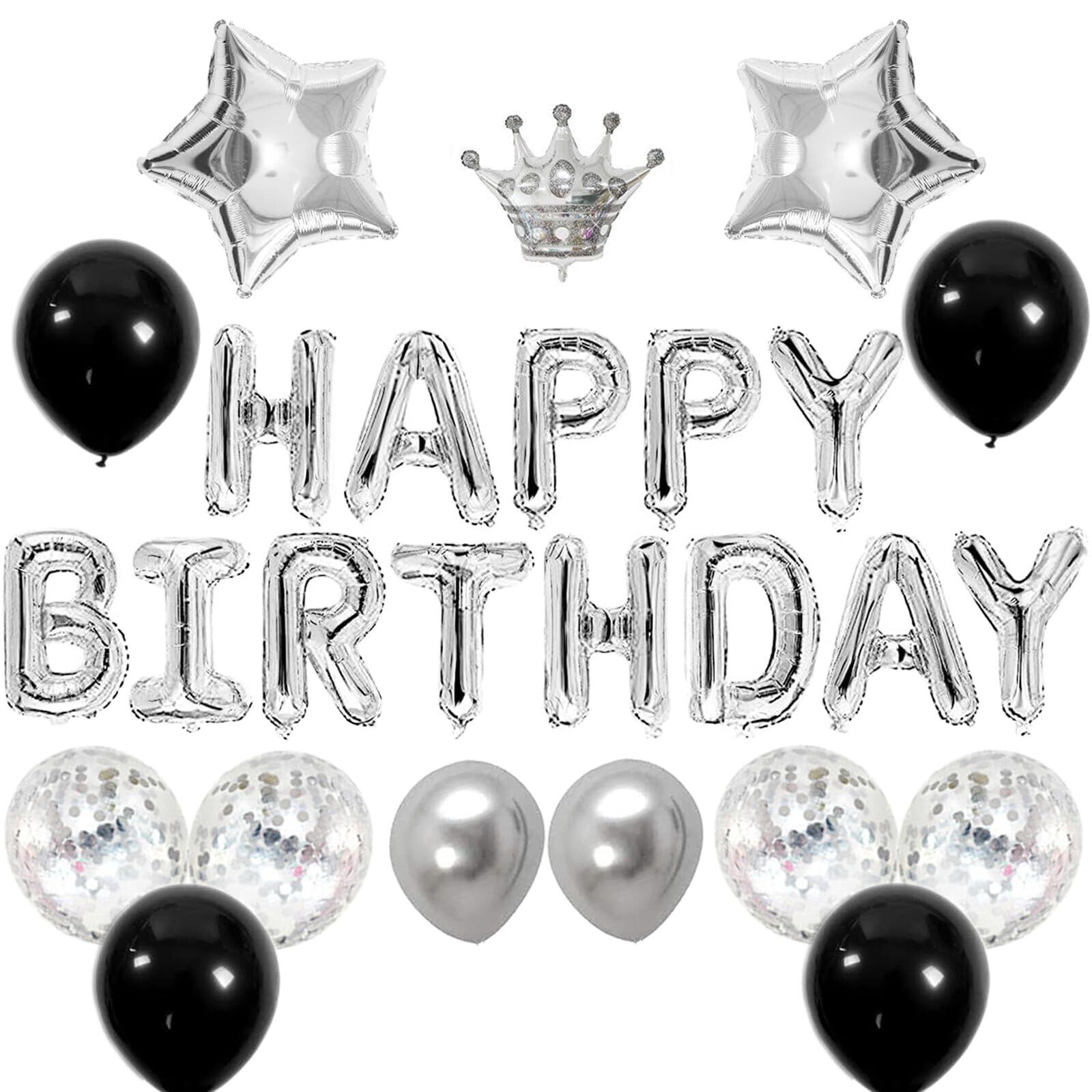 誕生日 飾り付け 女の子 バースデー バルーン30点風船 セット シンプル 飾り Happy Birthday 男の子 王冠 紙吹雪風船 パーティー グッズ かざりつけ お祝いお誕生日 装飾 (シルバー&ブラック)