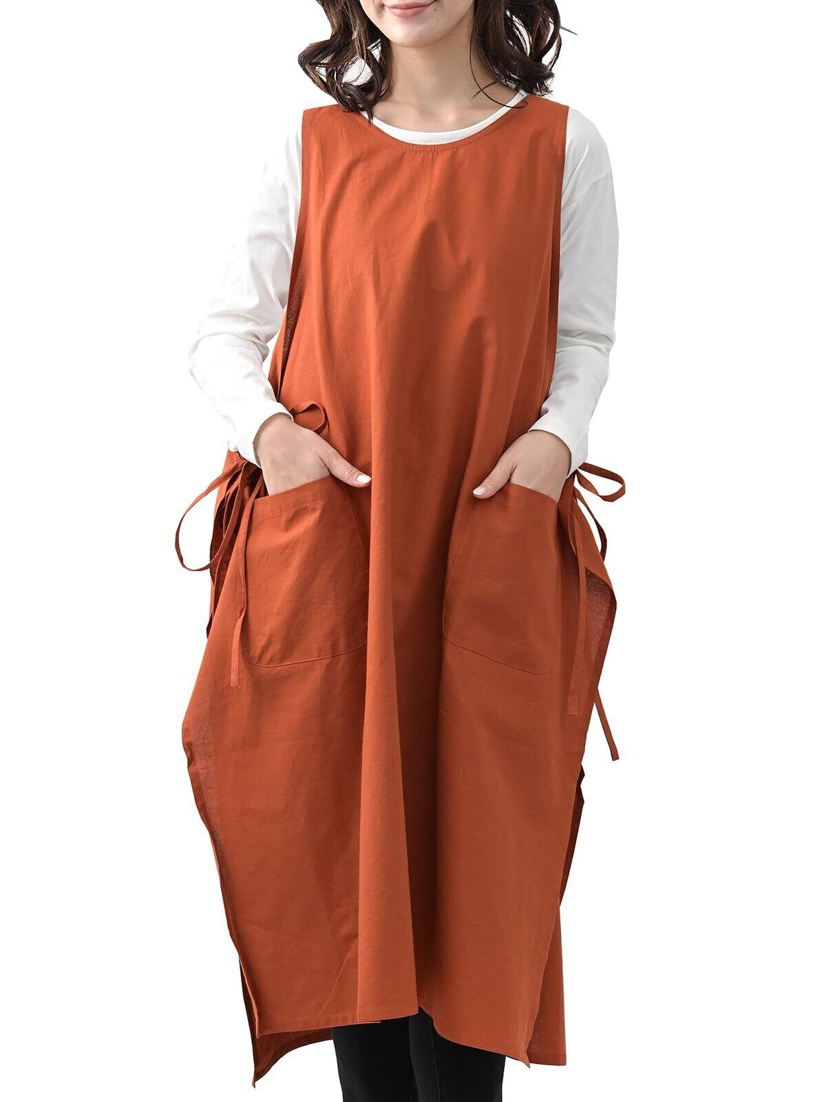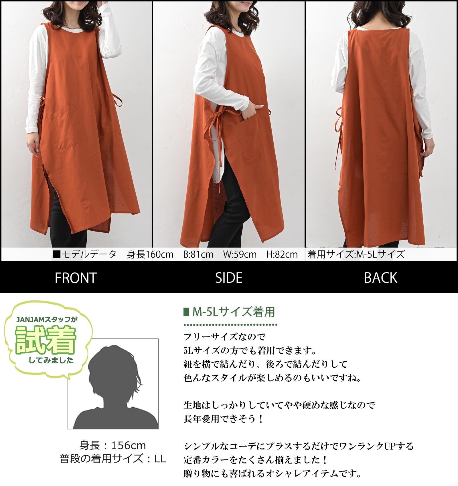 [JANJAM] 大きいサイズ レディース エプロンワンピース ノースリーブ ミドル丈 ポケット エプロンドレス cotton100