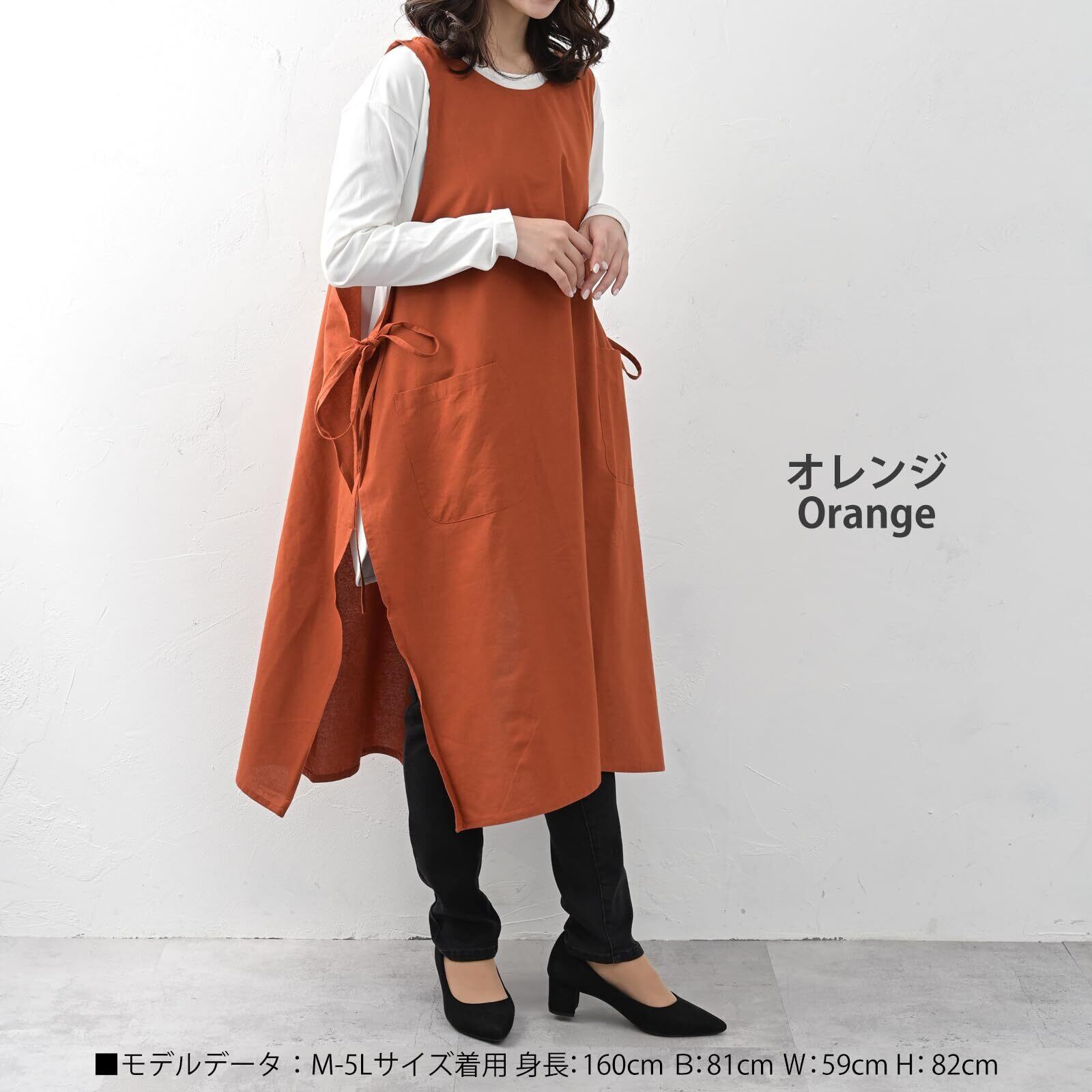 無地カラバリのエプロンワンピースは、サイドリボンでシルエットを自由に調節できるのが魅力です。スポッとかぶるだけで抜け感のあるスタイルが完成し、着こなしも簡単。リボンの結び方によって3通りのスタイルが楽しめるため、シーンに応じてアレンジ可能。ギフトにもおすすめな一枚です。シンプルながら、個性を引き立てるアイテムです。