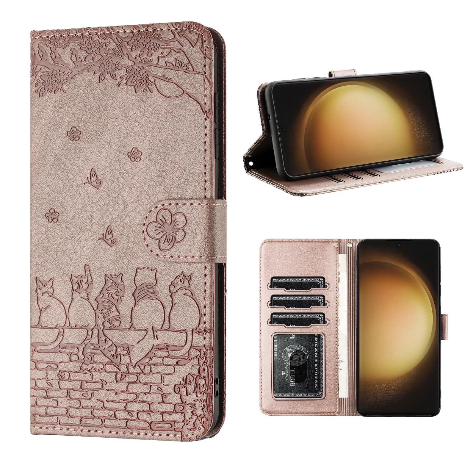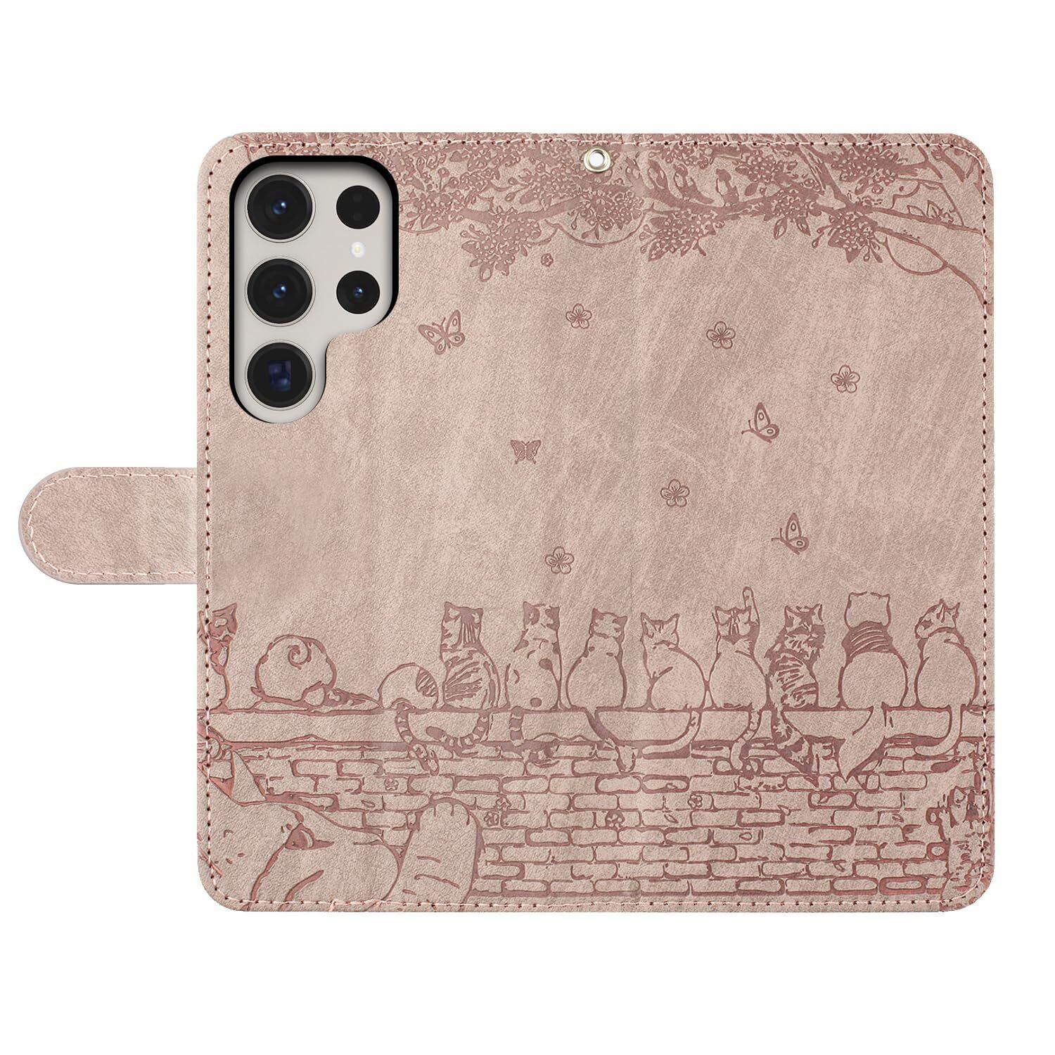 Galaxy S23 Ultra ケース 手帳型 人気 ギャラクシーs23 ultra ケース 手帳型 おしゃれ SC-52D SCG20 ケース 手帳型 カバー S23 Ultra 手帳型ケース かわいい猫と美しい桜柄 Samsung ギャラクシー S23 ウルトラ カバー ケース 手帳 PUレザー 本革 全面保護 カード収納 マグネット式 スタンド機能【 6.8インチ】グレーピンク