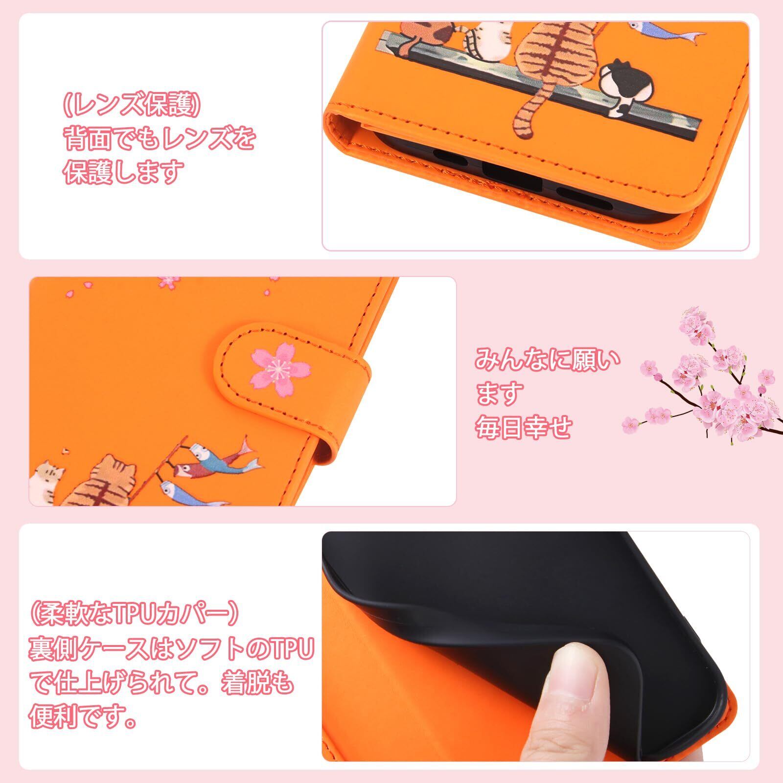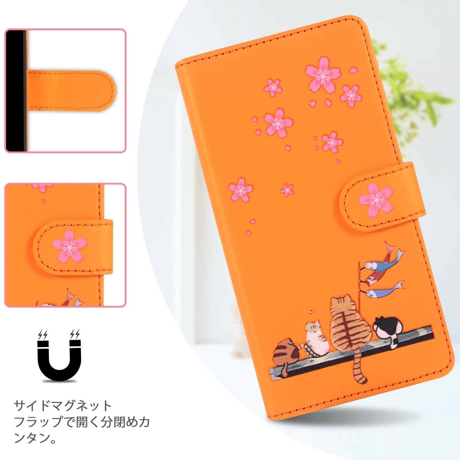 Qribo らくらくスマートフォン me F-01L ケース 手帳型 らくらくF-42A 手帳型 ケース コンパクト 元気 鯉のぼり模様 和風 手触りのいい らくらくスマートフォン F-42A ケース らくらくホン f01l ケース ドコモ F-01L F-42A スマホ スタンド らくらくホン f42a ケース 色は新鮮でエレガントです F-42A スマホケース オレンジ