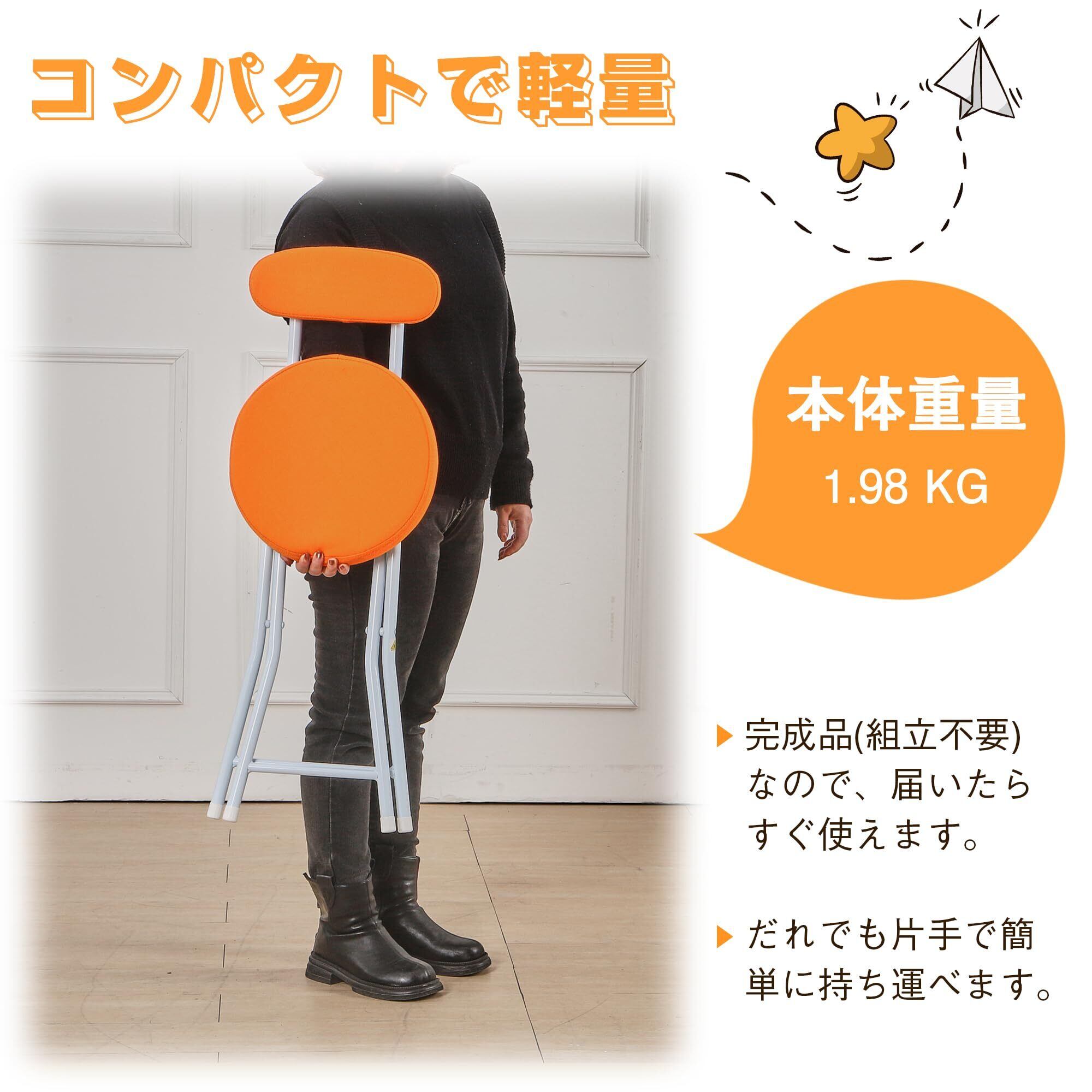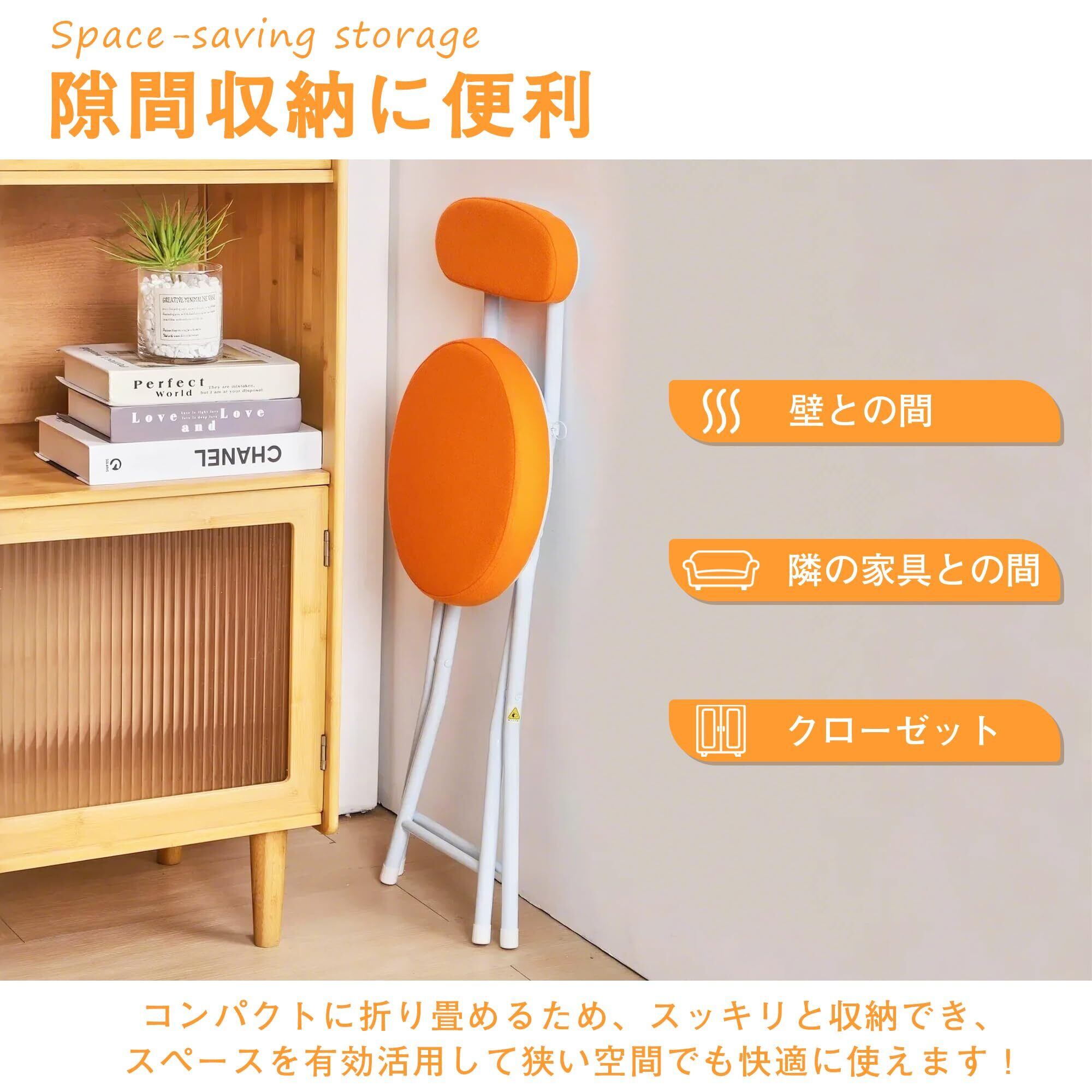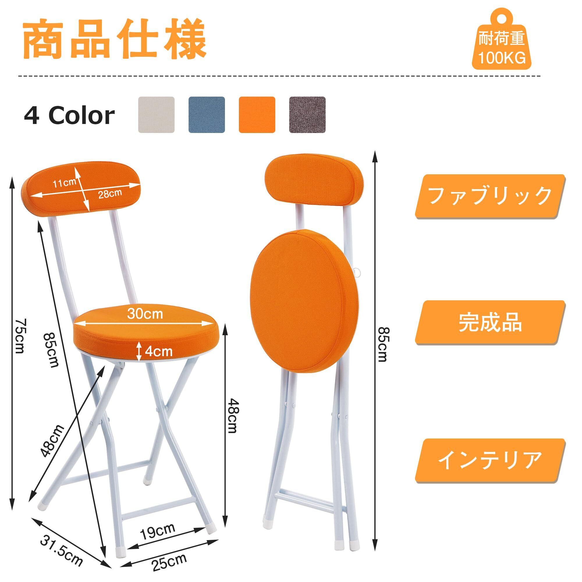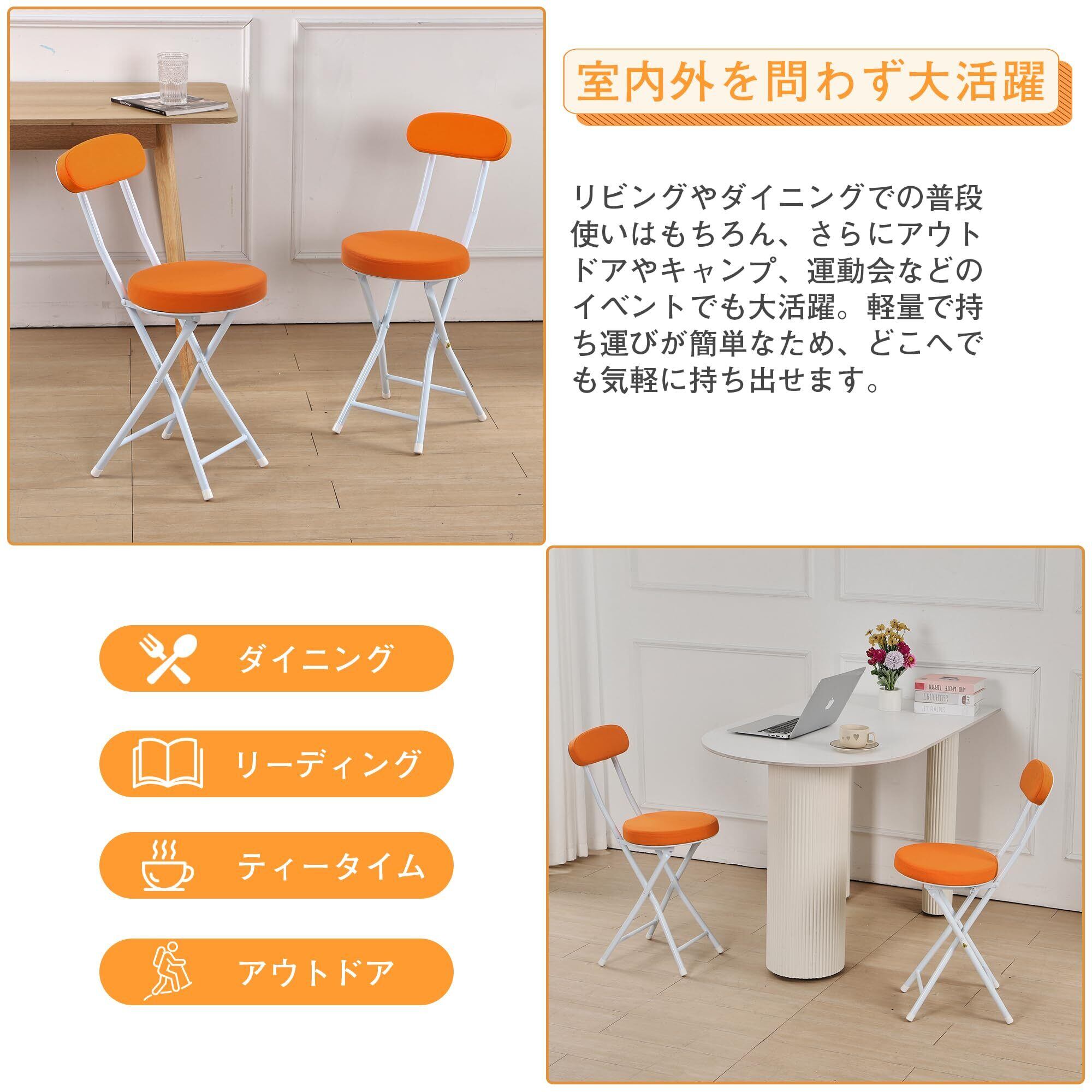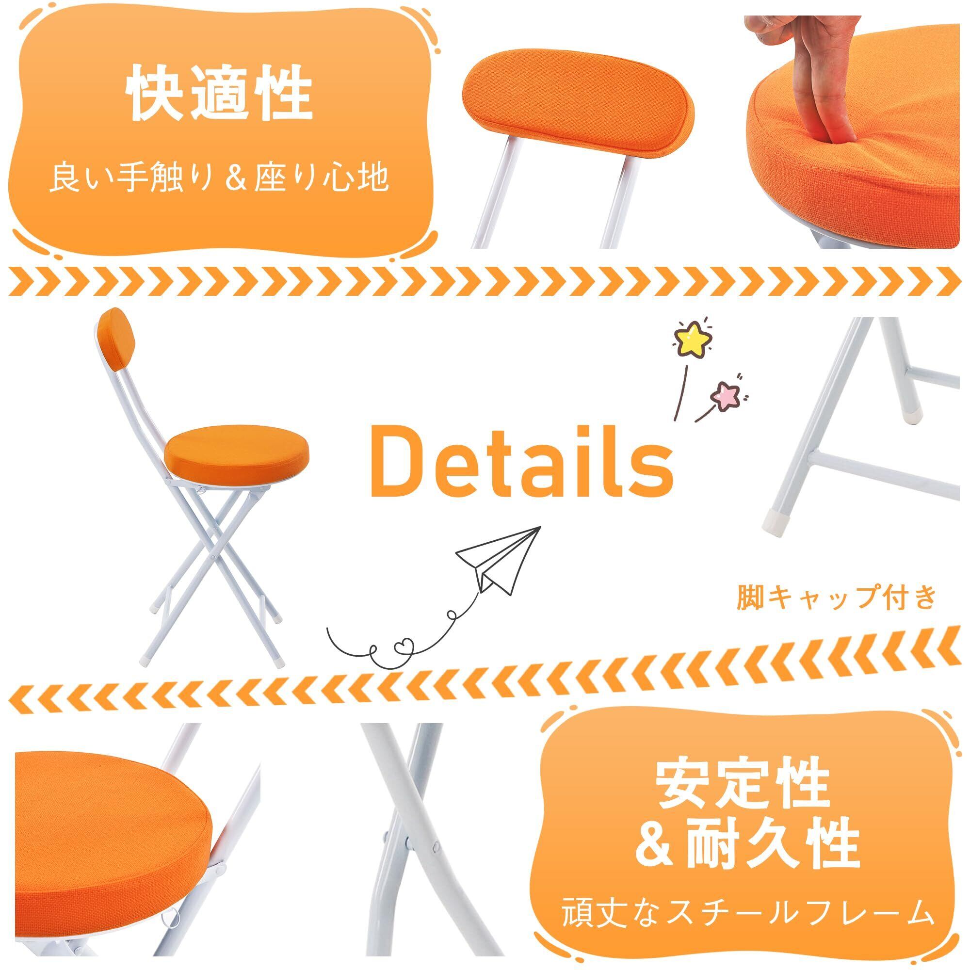VECELO 折りたたみ椅子 パイプ椅子 折り畳み 背もたれ スリム 軽量 持ち運び 完成品 組立不要 座面高48cm 耐荷重100kg ファブリック オレンジ