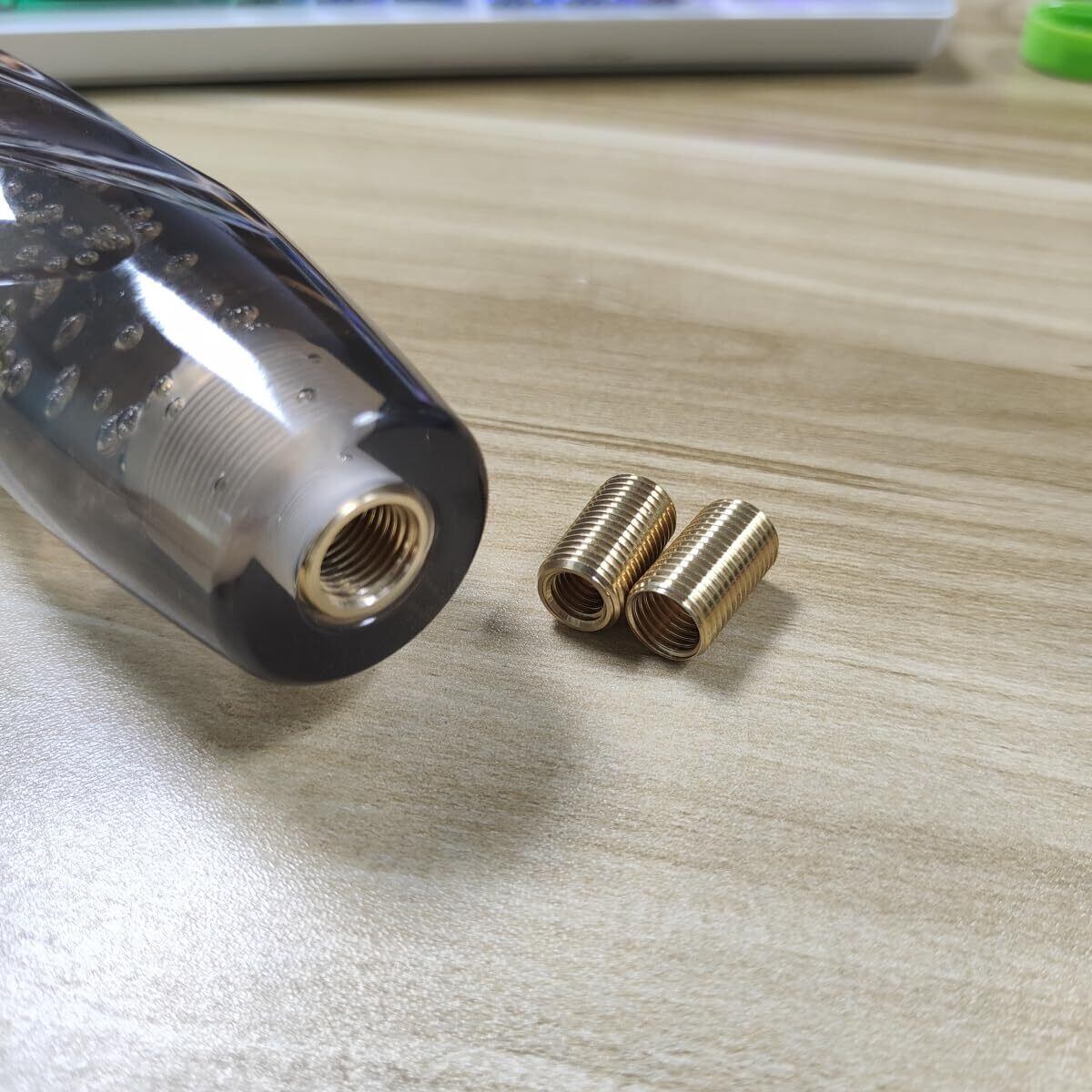 各車種用の径変換アダプターが付属し、普通車、トラックなどに装着可能。シフトノブ本体はM12×1.25、付属アダプターはそれぞれM8×1.25、M10×1.25。