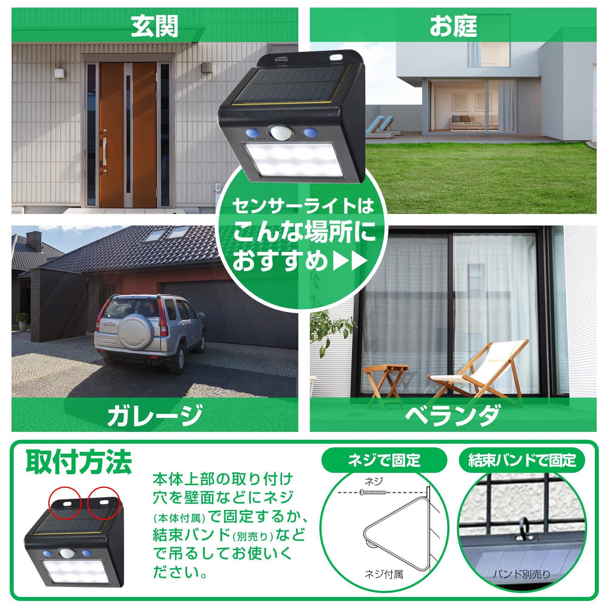 【ソーラー発電式】ソーラー発電式なのでコンセントがない場所に設置できて、電気代もかかりません