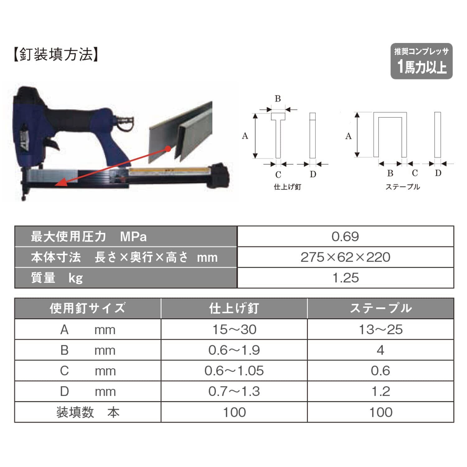 ステープル・ネイル装填数:100