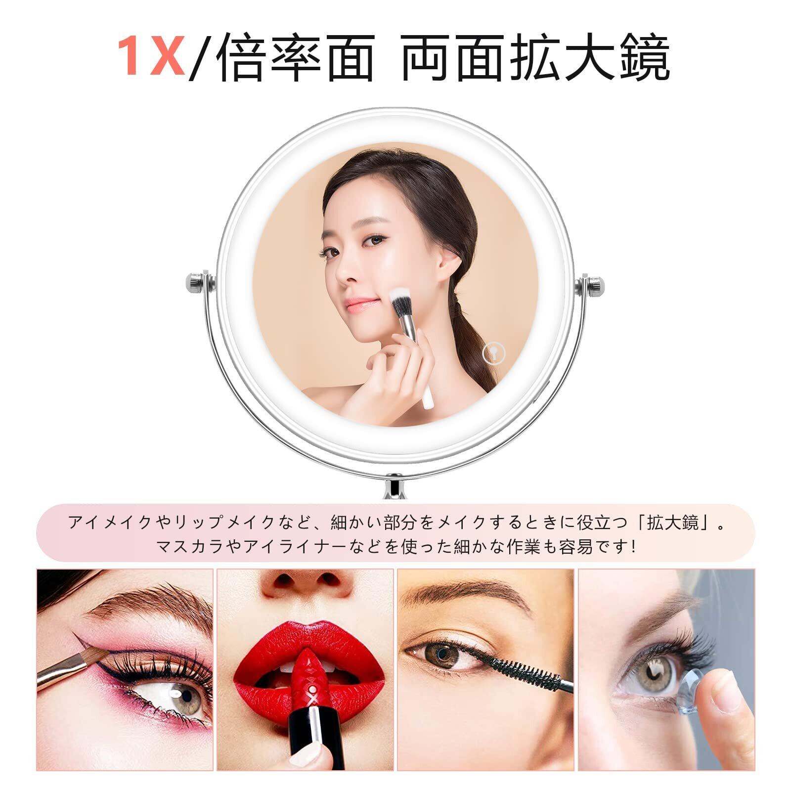 【光調整可能&USB充電式ライト】:メイクをするときは環境も大切です。シンプルな設計で電源オン・オフ、明るさ調整、色温調整など、各部の操作機能が一つボタンに集まる。3種の色温度切り替え可能:昼白色、温白色、電球色、平面発光の設計で、光をワイドに広がって、ダブルイメージ/ストロボ/グレアなど目に悪いことを防ぎ。無段階調光の明るさで使用場所や状況に合わせて、自分好みの光を自在に操ることができます。2000mA大容量電池内蔵、USB充電式は電池の交換の手間が省け、他社の電池式より便利かつ環境に優しい化粧鏡です。