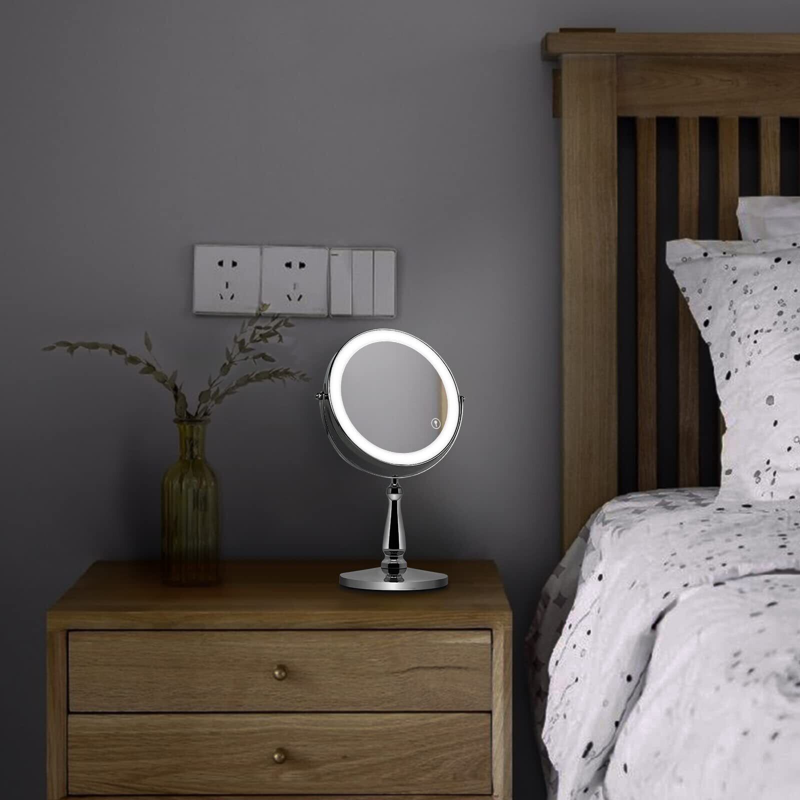 Shinmax 鏡 卓上 拡大鏡 女優ミラー 5倍 スタンドミラー ライト付き Type-C充電式 メイク メモリー 消し忘れ防止 PSE認定済 8インチ 日本語説明書付き【ギフト包装】