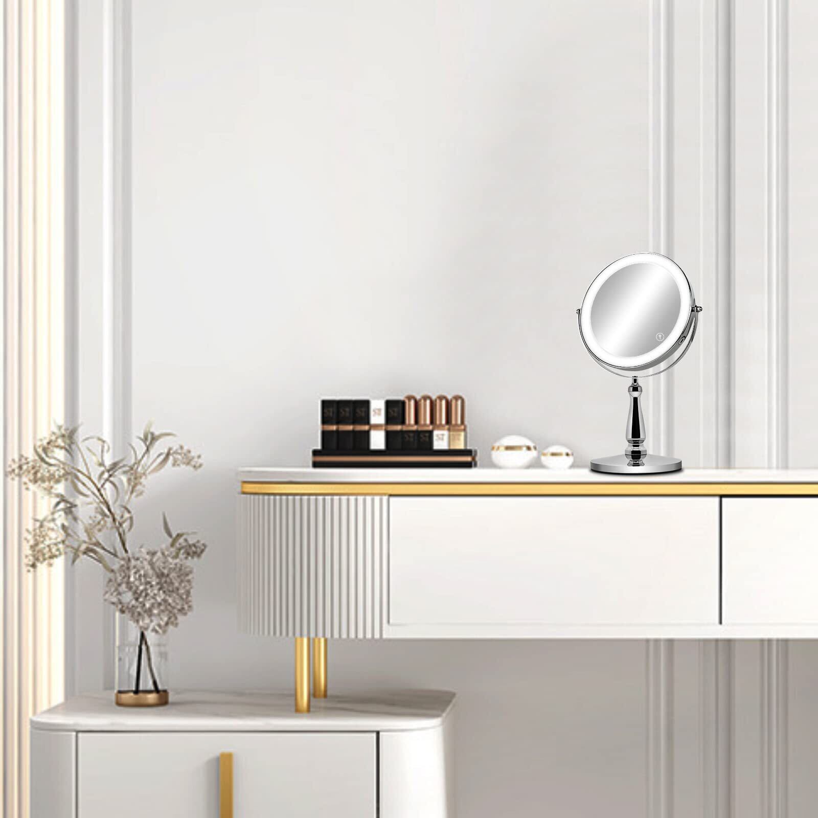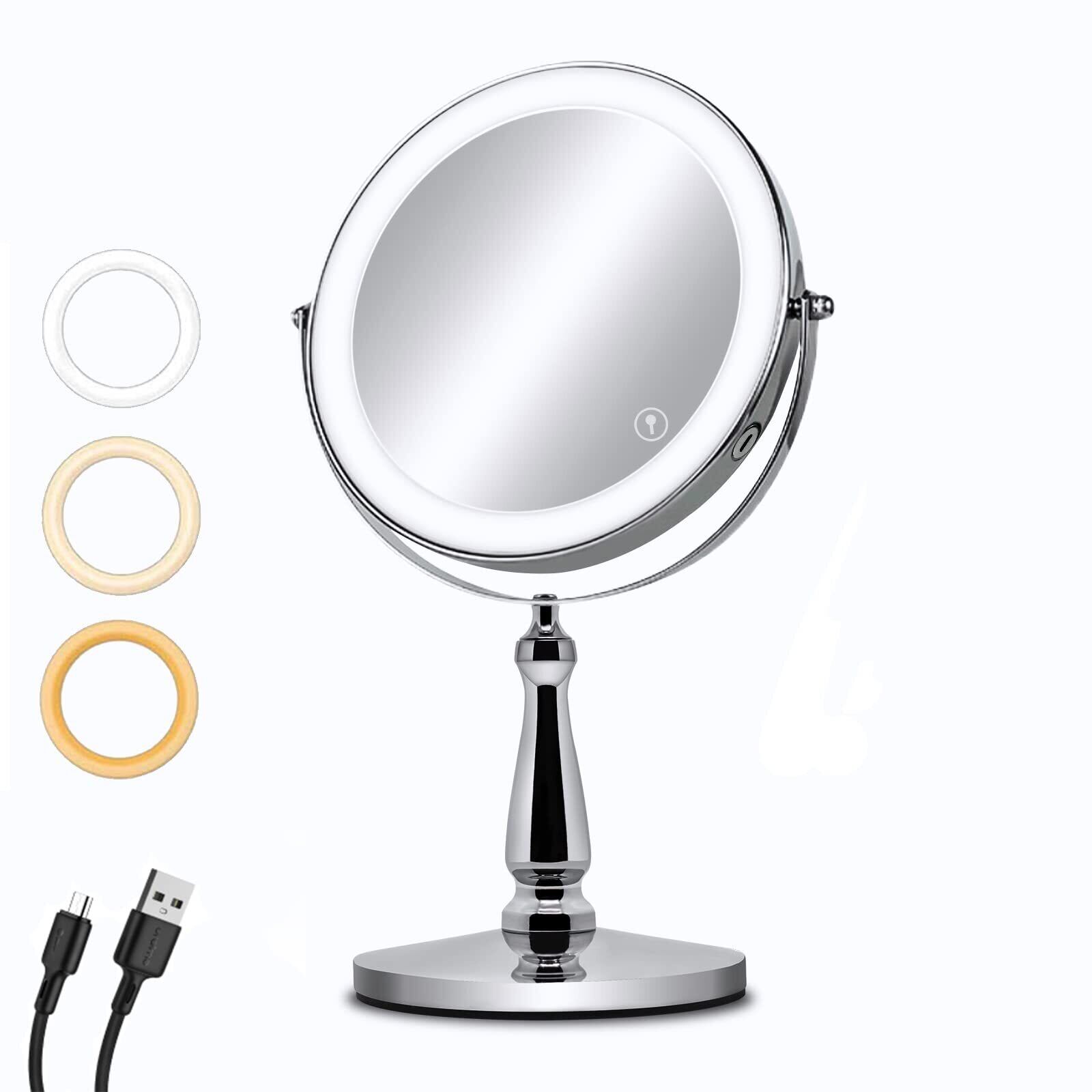 【高演色性】アジア人の肌色の演色指数に基づいて、特殊な高演色性のLEDライトを搭載しています。自然光を再現し、ジュエリー級の高演色性に至り、8インチ大きめの円型ミラーはお家でプロ級のメイクアップをお楽しみ頂けます。身づくろい、メイクアップ、スキンケアなどには最適です。